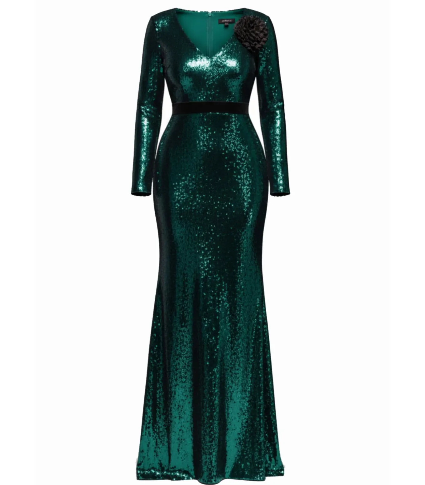 Straal glamour en zelfvertrouwen uit met de Goddiva Liquid Sequin Corsage Maxi Dress uit onze nieuwe Old Hollywood–collectie. Deze prachtige avondjurk belichaamt elegantie en stijl. Met een verleidelijke V–halslijn, lange elegante mouwen, een luxueuze fluwelen riem en een charmant corsage detail is deze jurk de perfecte keuze voor formele feestjes, gala’s, proms, black–tie evenementen en elegante functies. De vloeiende pailletten geven de jurk een bijzonder glamoureuze afwerking, terwijl de diepe halslijn en fluwelen ceintuur het figuur flatteren. Met de Liquid Sequin Corsage Maxi Dress maak je bij elke gelegenheid een onvergetelijke indruk en straal je elegantie en stijl uit.
