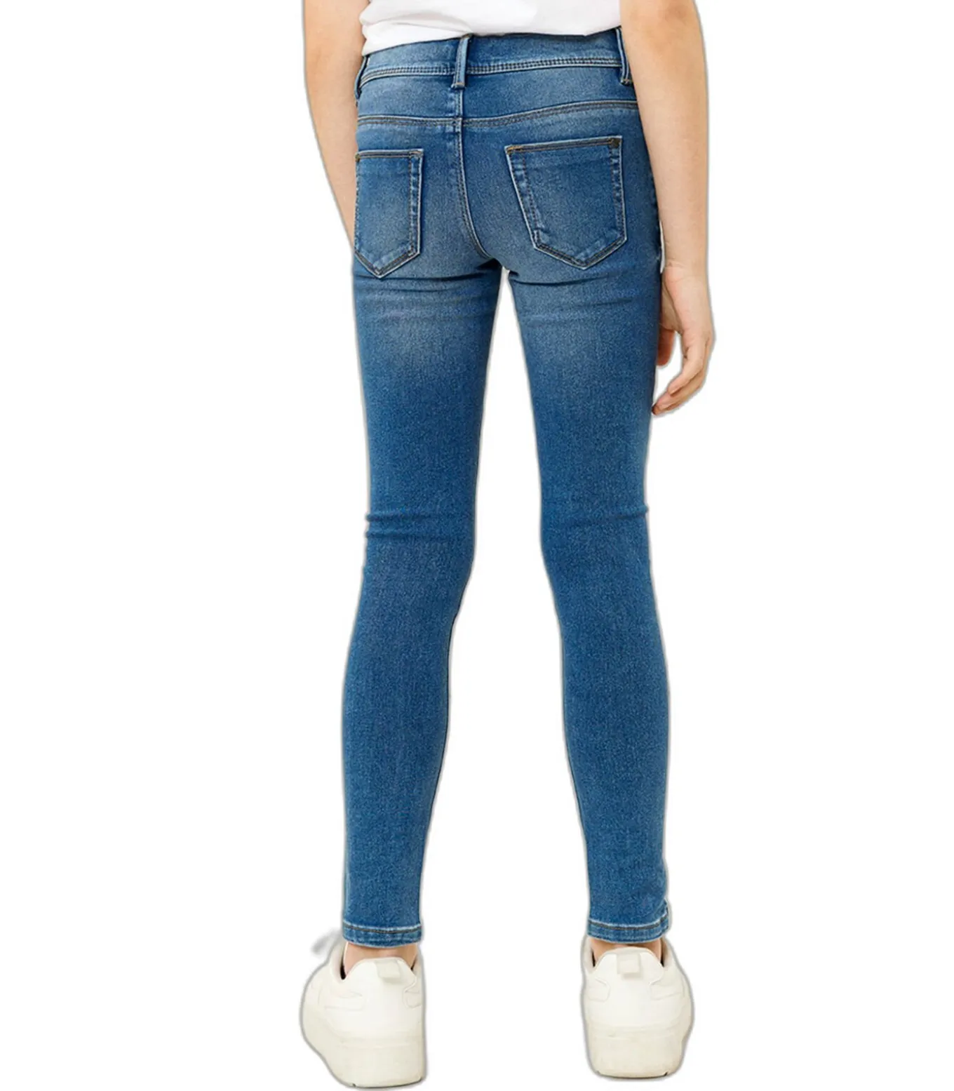 – Type detail: Skinny fit jeans– Stof: Denim is een duurzaam geweven materiaal dat verkrijgbaar is in verschillende uitdrukkingen voor een unieke look– Maat/Hoogte: Regular fit– Wasafwerking: Versleten effect voor karakter– Sluiting/Glijsluiting: Klittenbandsluiting en ritssluiting– Extra details: – Verstelbare taille– – Klinknagels– – Andere zak: voor– en achterzakken– Gelegenheid/styling: Vind de perfecte jeans en verras uw kind met tijdloze stijlen die zorgen voor een coole look en bewegingsvrijheid– Pasvorm: Polly is een jeans met een doorlopende skinny fit.