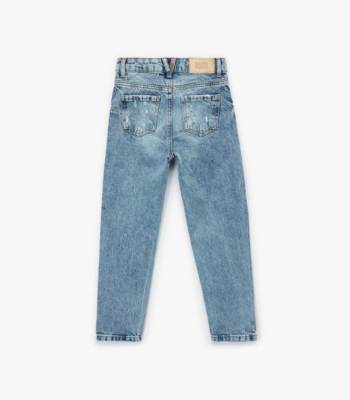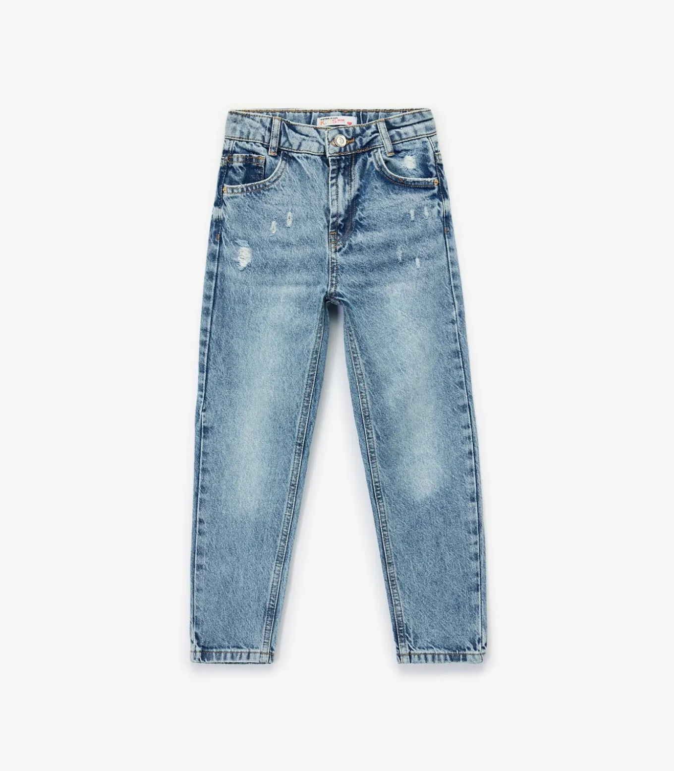 Deze meisjes spijkerbroeken bieden een comfortabele en stijlvolle optie voor dagelijks gebruik. Met een mom fit en verweerde details creëert deze broek een trendy look die kinderen de vrijheid geeft om makkelijk te bewegen. Vervaardigd van 100% katoen, voorzien van een normale taille en zakdetails, is deze broek een geweldige keuze voor elke garderobe.
