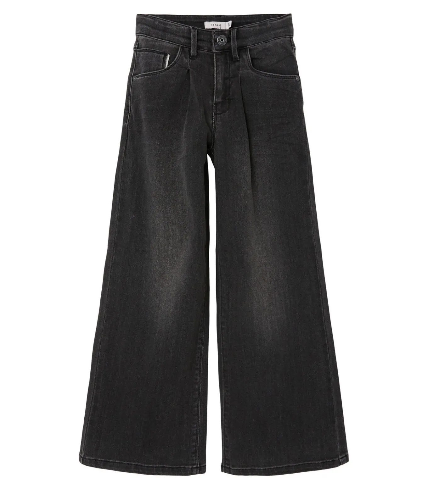 Onze wijde jeans met wijde pijpen is perfect voor kinderen die een casual, maar modieuze look willen. De comfortabele pasvorm zorgt voor bewegingsvrijheid en de tijdloze look past bij elke kleur – Heup: baggy fit – Benen: wijde pasvorm – Klittenbandsluiting – Verstelbare taille – Stijl met vijf zakken