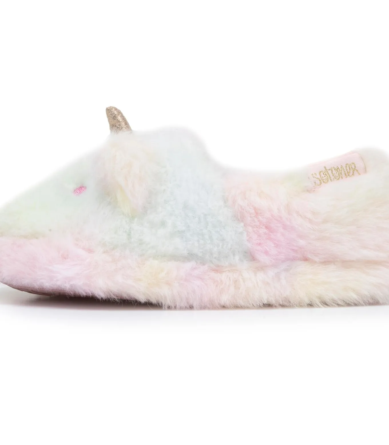 Deze pantoffels zijn gemakkelijk aan te trekken, zacht en comfortabel. Het veelkleurige imitatiebont en het eenhoornborduursel geven deze comfortabele slofjes een origineel tintje. Bovendien biedt de nieuwe zachte rubberen antislipzool met speels design je kind extra veiligheid. Deze kinderslippers zijn machinewasbaar op 30°C.