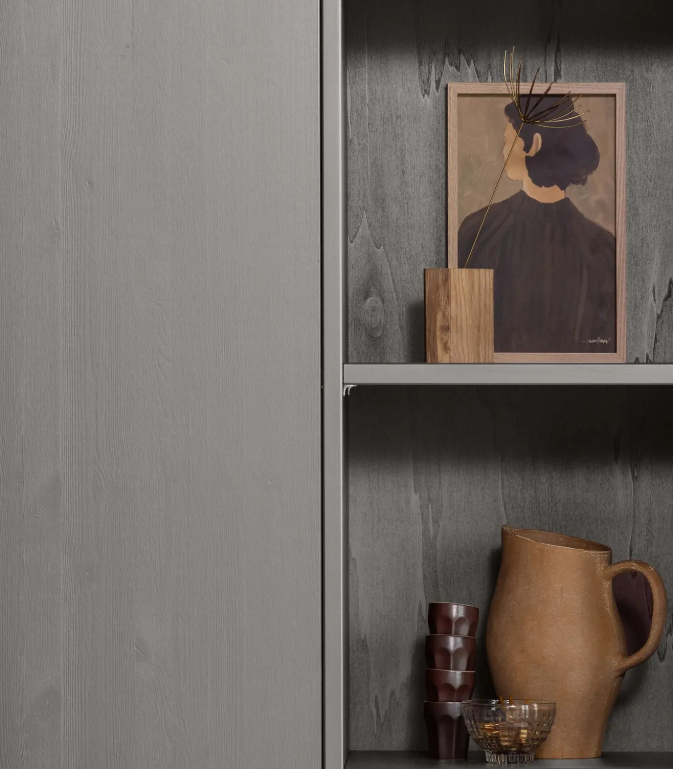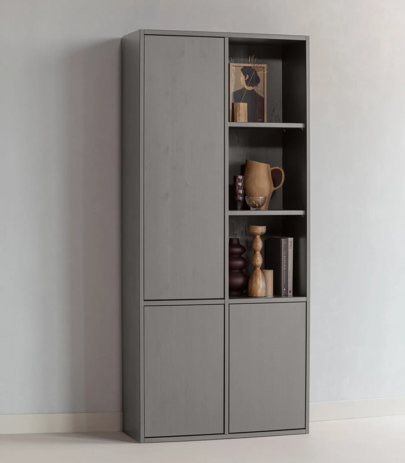 De romp en zichtdelen zijn van grenenhout; achter de deurtjes zijn platen toegepast van spaanplaat. Meubelen uit onze collecties zijn afkomstig van FSC–gecertificeerde leveranciers en worden op diverse manieren behandeld. Geschuurd grenen is glad en netjes afgewerkt; geborsteld grenen heeft juist een doorleefde uitstraling. Voor een robuustere look kan het grenenhout band gezaagd worden.