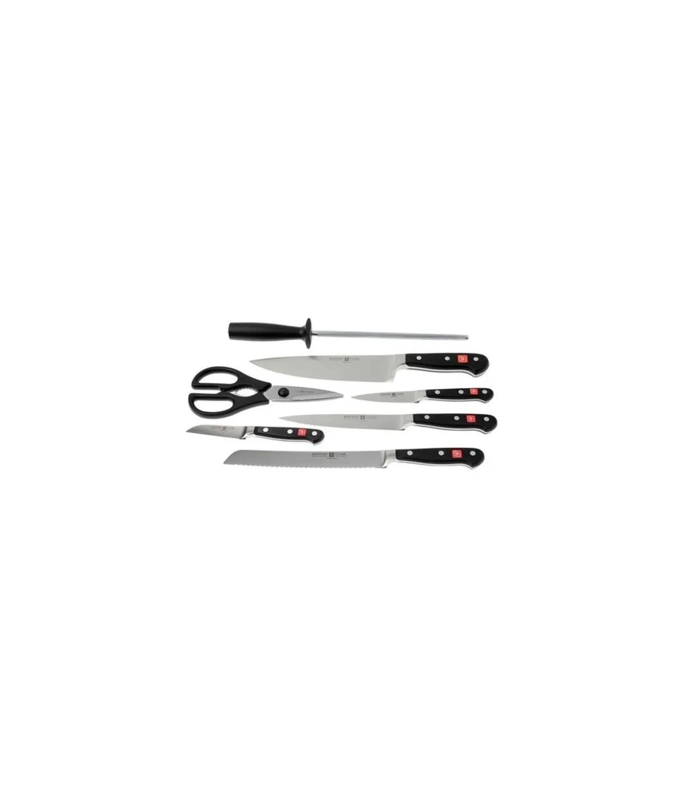 Ben je toe aan een nieuwe set messen? De Wusthof messenblok Classic is een 8–delige messenblok. Deze complete set beschikt over de basisonderdelen voor in de keuken. Om de messen veilig te bewaren zijn ze makkelijk op te bergen in het meegeleverde messenblok. Deze set bestaat uit:Wusthof Koksmes Classic 20 cmWusthof Vleesmes Classic 16 cmWusthof Broodmes Classic 20 cmWusthof Officemes Classic 10 cmWusthof Officemes Classic 8 cmWusthof Aanzetstaal 23 cmWusthof KeukenschaarWusthof Messenblok Classic