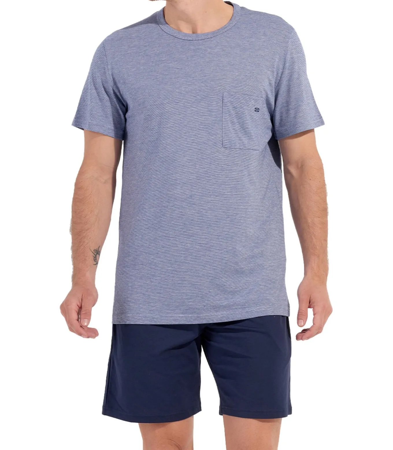 Deze pyjama combineert een shirt met korte mouwen met een comfortabele broek en is uiterst comfortabel om te dragen. De zachte, rekbare materialen voelen aangenaam aan op de huid, zorgen voor optimale bewegingsvrijheid en reguleren de lichaamstemperatuur perfect. De ademende en absorberende stof ondersteunt een evenwichtig gevoel van welzijn. De broek heeft steekzakken en een verstelbare tailleband met trekkoord. Een huidvriendelijke, elegante en comfortabele basic voor elke avond.