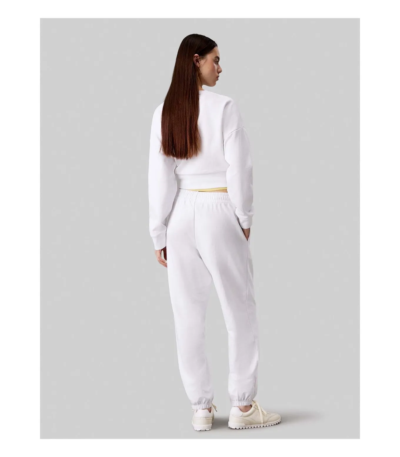 Kleur: Briljantwit. Samenstelling: 86% katoen, 14% polyester. Pasvorm: Regular. Details: Katoenen badstof, elastische tailleband met trekkoord aan de binnenkant, elastische manchetten, steekzakken, monogramlogo op de broekspijp. Gebruik: Ideaal voor ontspanningsmomenten en dagelijks comfort, ook perfect voor een sportieve en casual look.
