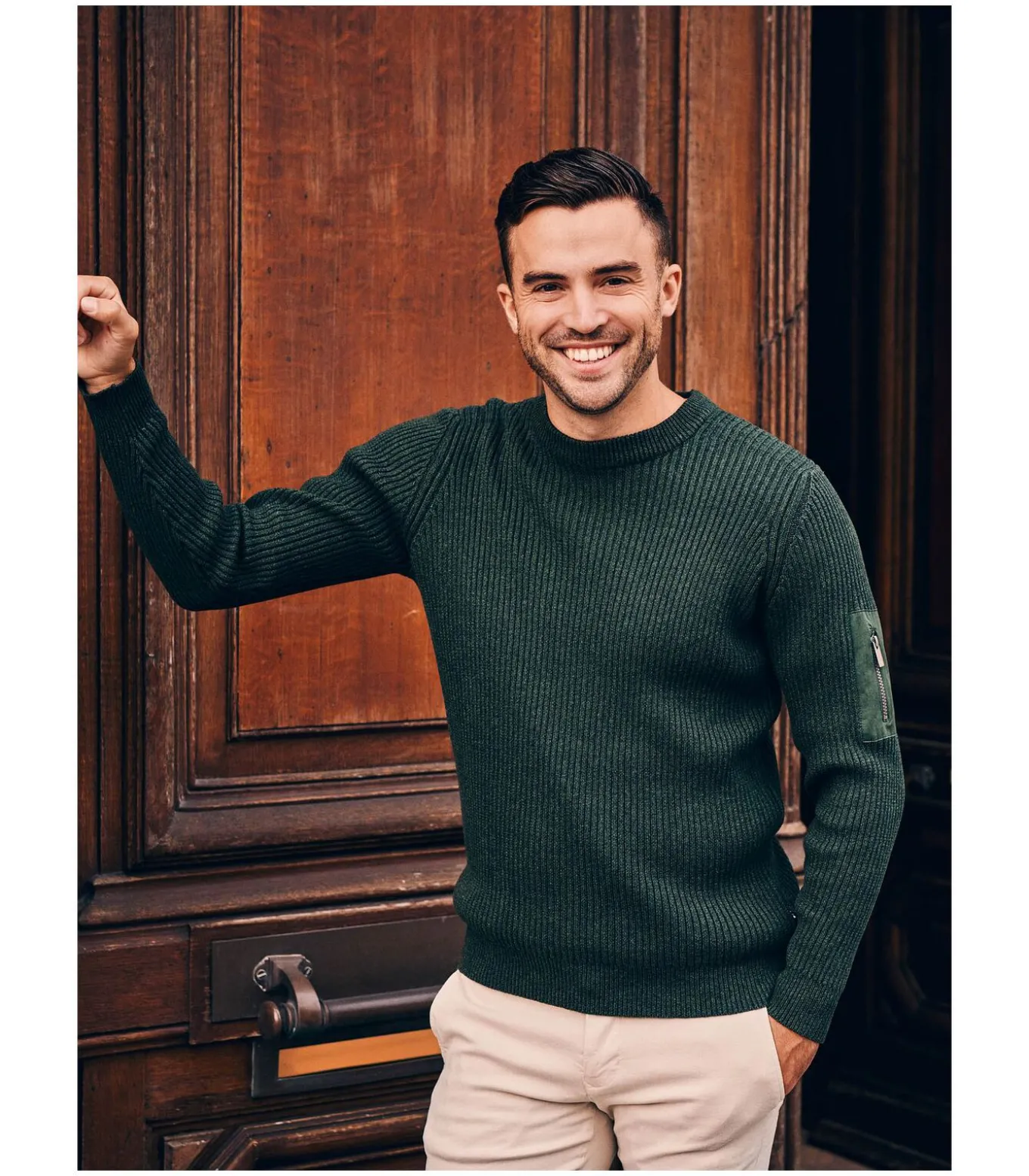 Met deze trui van Suitable haal je een stijlvolle look en comfort in huis. De herentrui heeft een Slim–Fit pasvorm en is voorzien van een ribgebreide structuur, een ronde hals en een zakje met ritssluiting op de arm. Tevens zorgt het materiaal van de trui voor een natuurlijke stretch, ademend vermogen en een hoog draagcomfort. In een stijlvolle groene kleurSlim–Fit pasvormGemaakt van 100% organisch katoen
