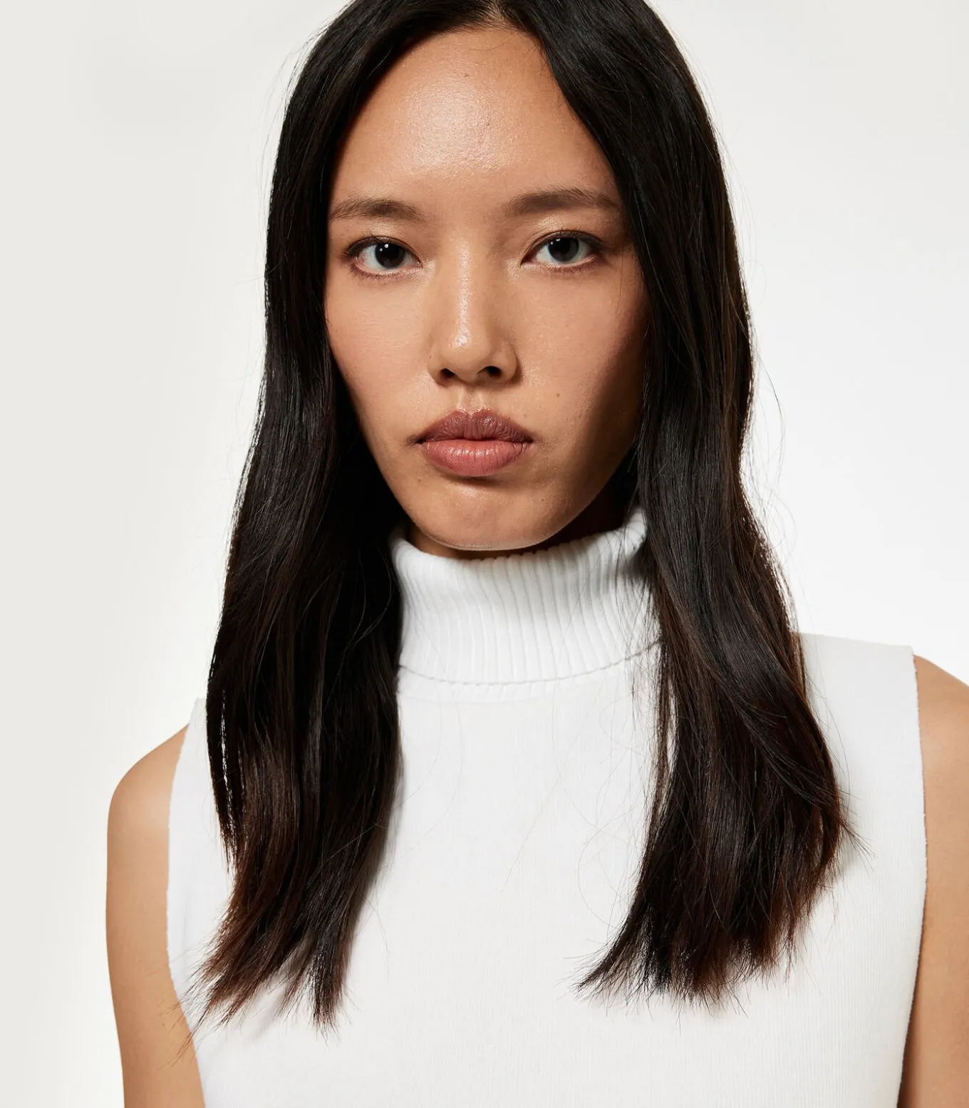 Deze elegante mouwloze top met coltrui is perfect voor zowel dagelijks gebruik als op kantoor. De hoogwaardige stof biedt comfort en een stijlvolle uitstraling die eenvoudig te combineren is met verschillende onderstukken. De minimalistische look met een moderne twist maakt het een veelzijdige toevoeging aan je garderobe.