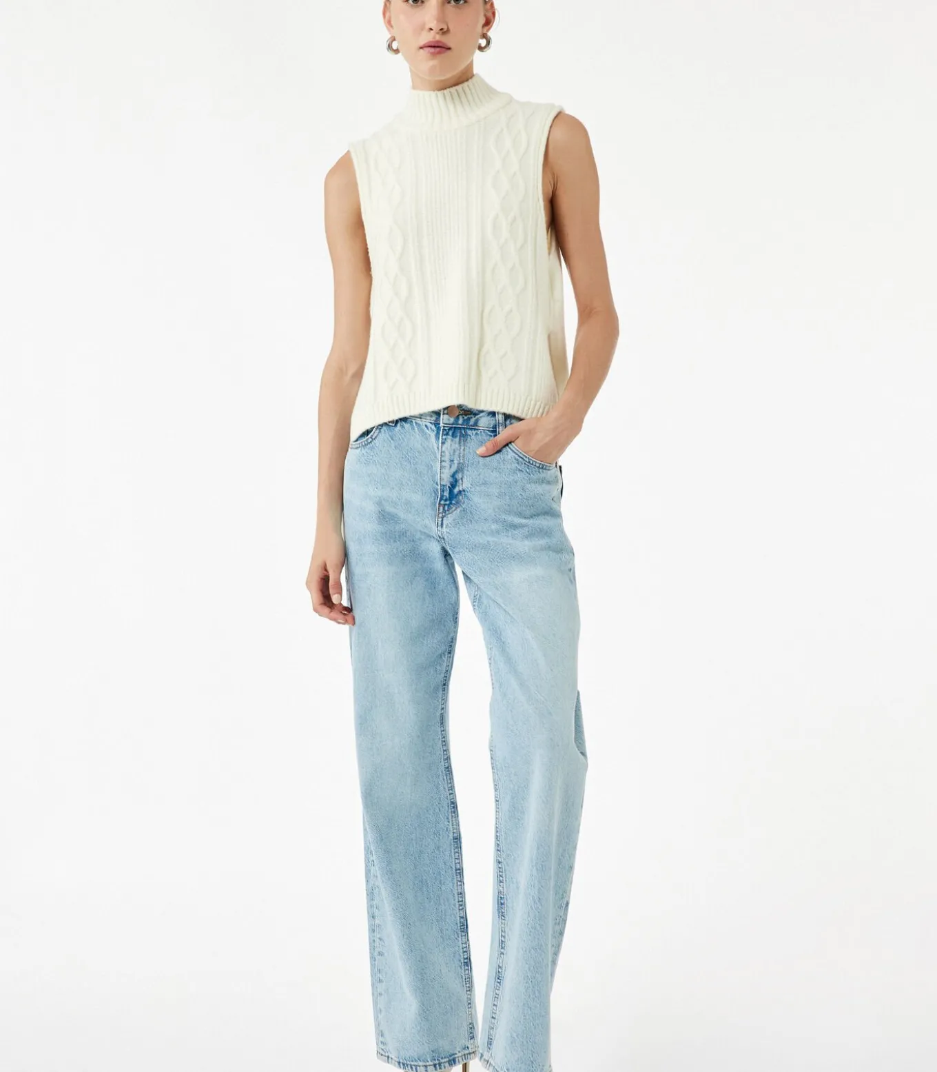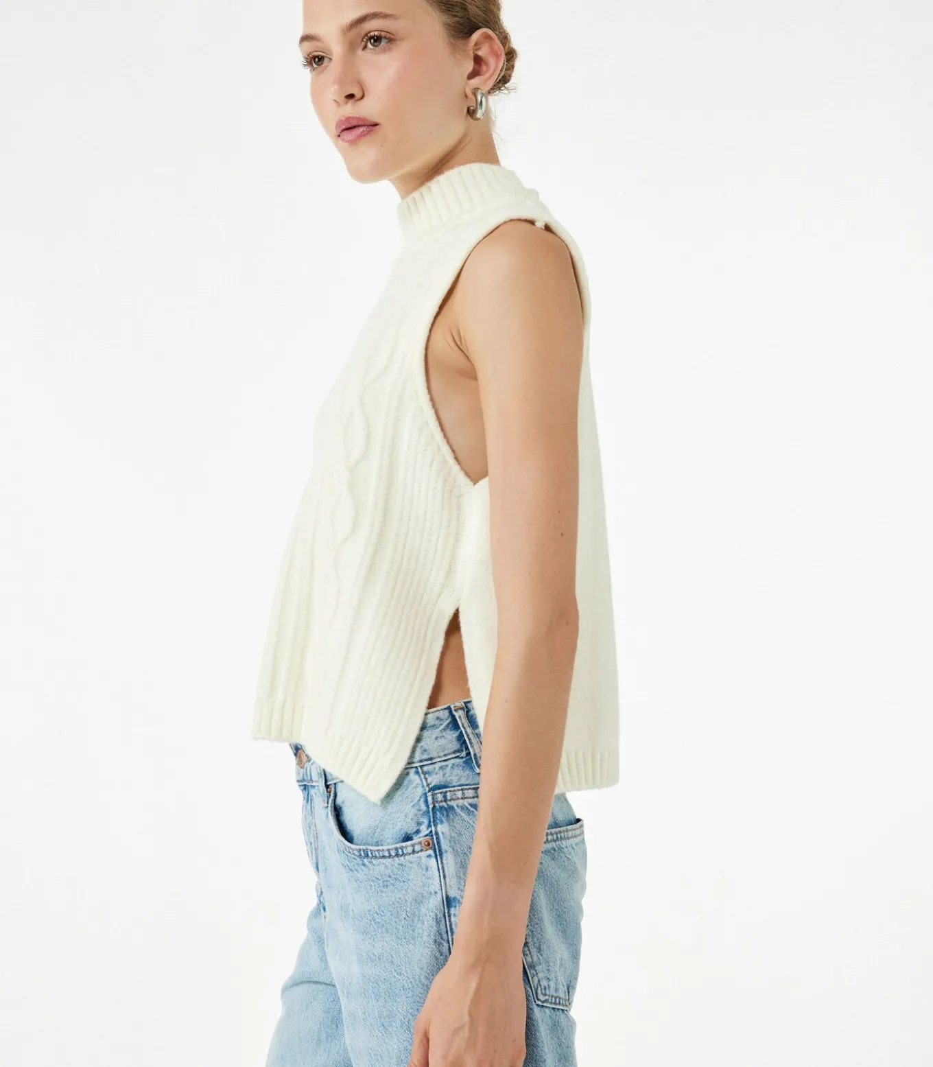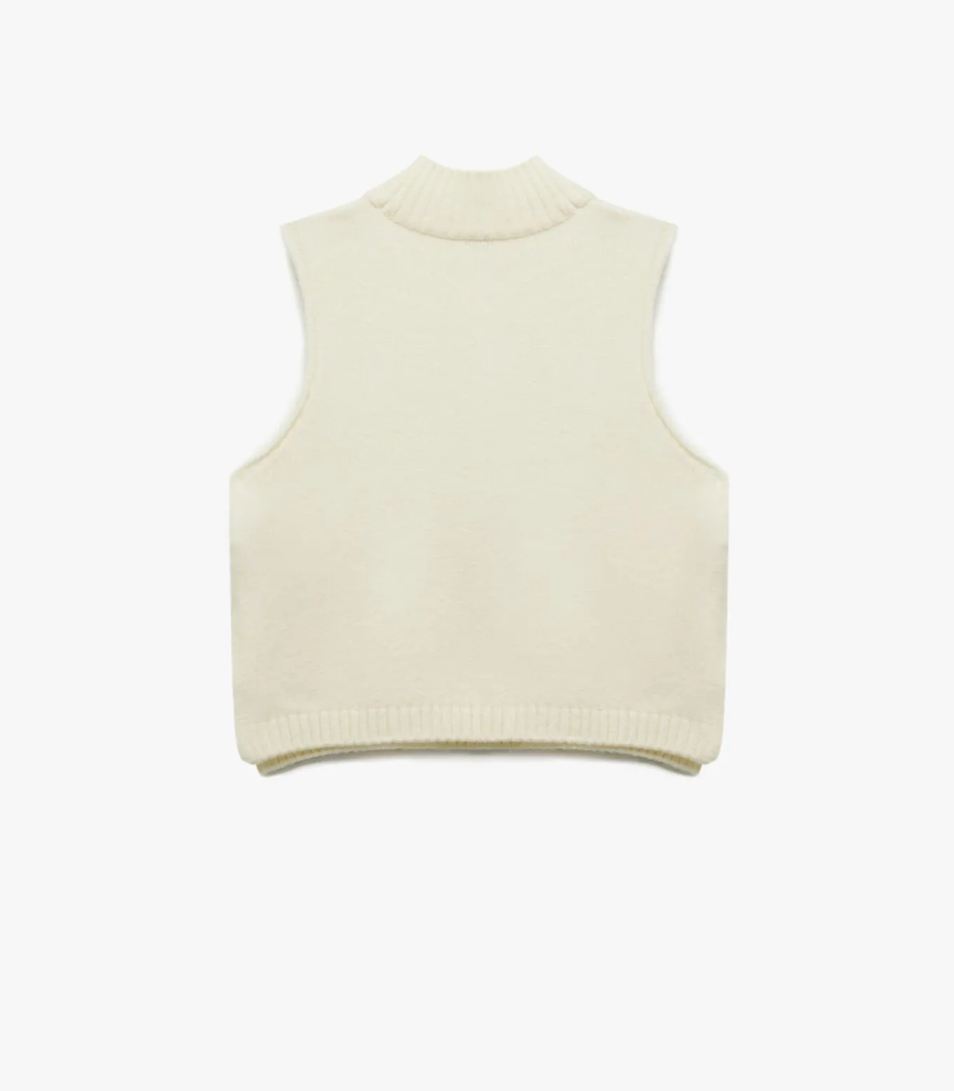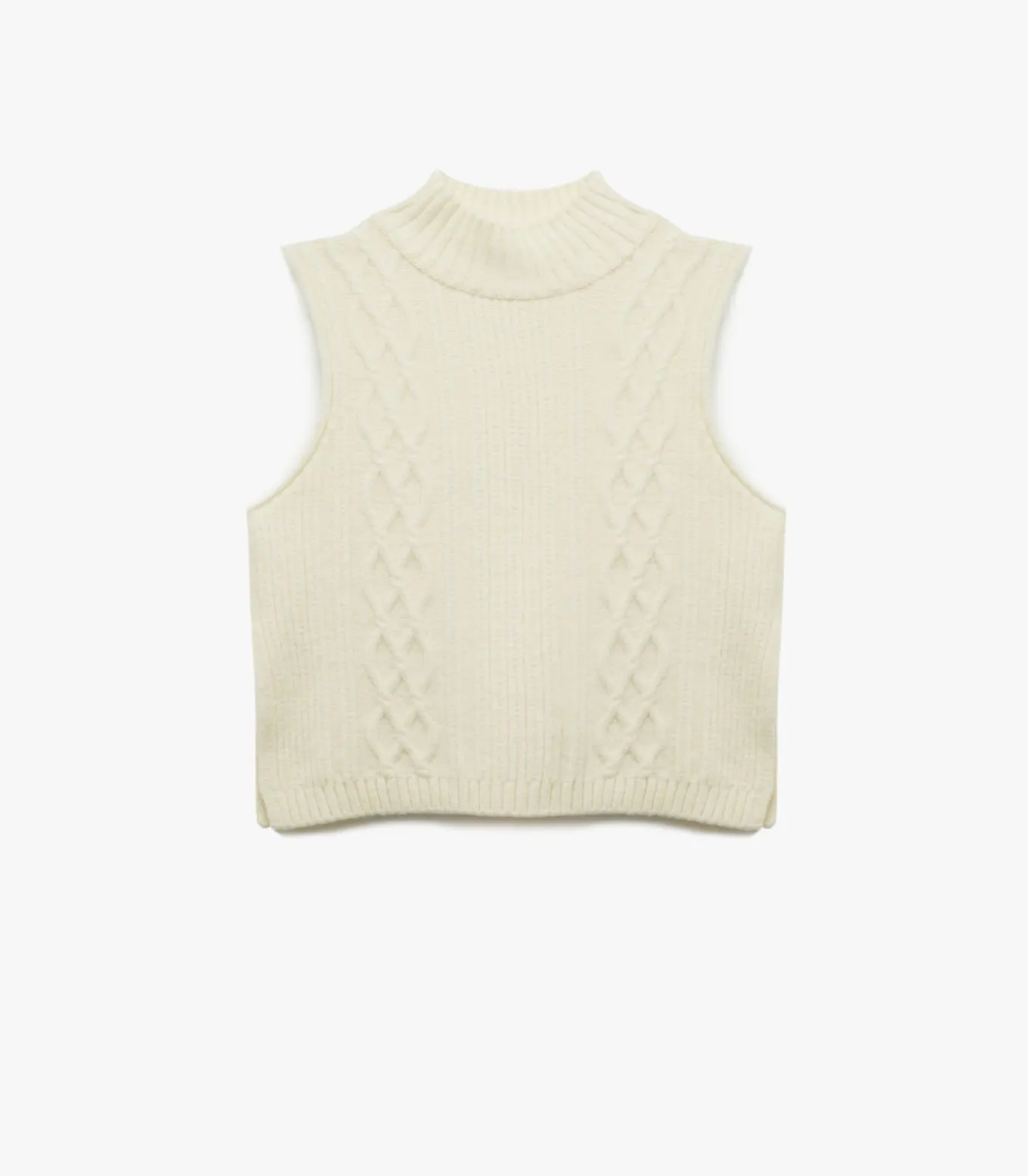 Deze stijlvolle mouwloze trui met een hoge kraag voegt een moderne touch toe aan elke garderobe. Perfect voor zowel dagelijks gebruik als zakelijke settings. Combineer met een strakke broek voor een elegante look of een spijkerbroek voor een casual outfit. Het getextureerde breiwerk geeft een warme en luxe uitstraling die comfort uitstraalt.