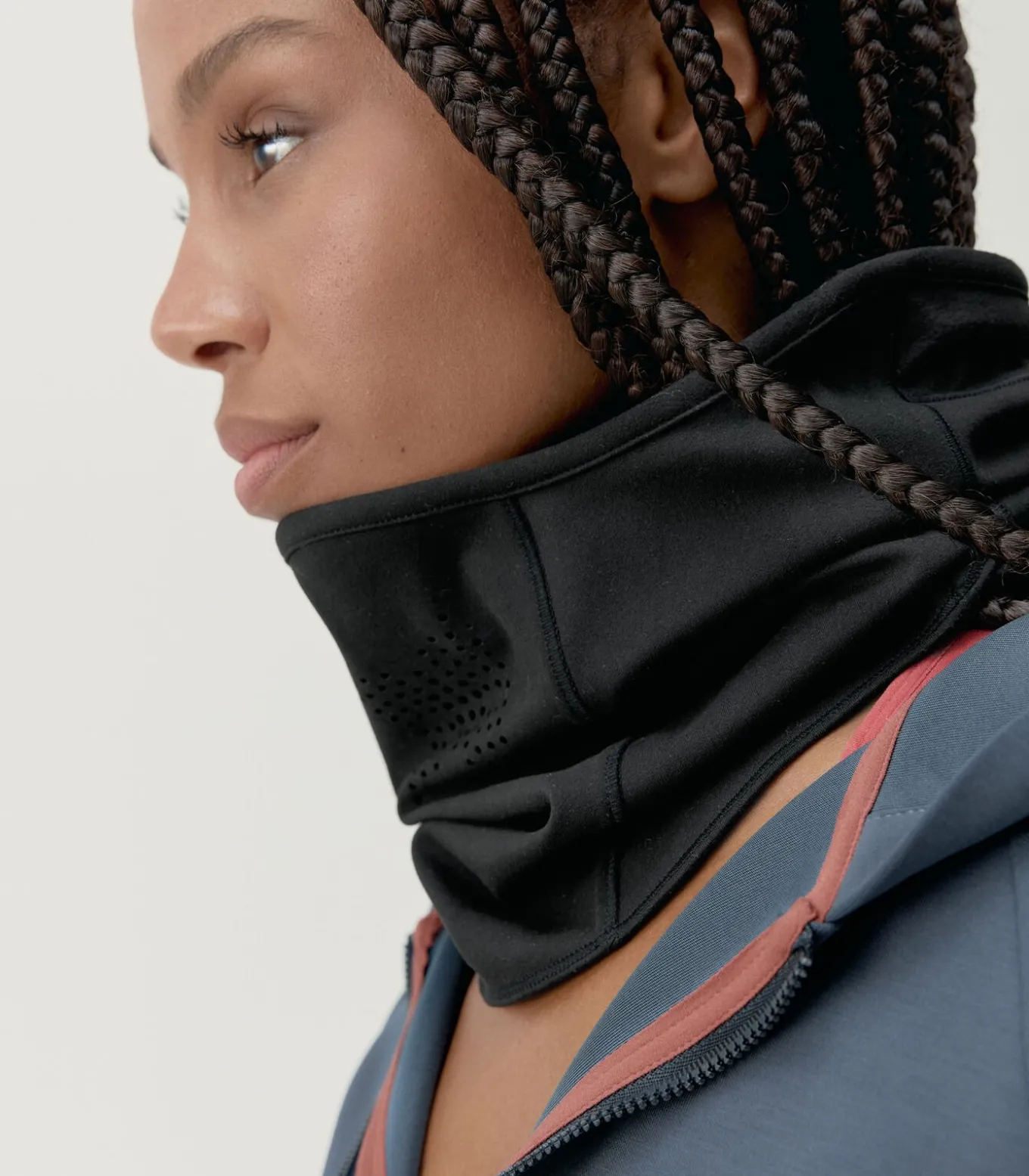 Rekbare en zachte Warm–T stof. Microgeperforeerd om het ademend vermogen en de ademhaling tijdens het sporten te bevorderen. Afstelrubber met regelaar voor meer aanpassing. Reflecterende print.