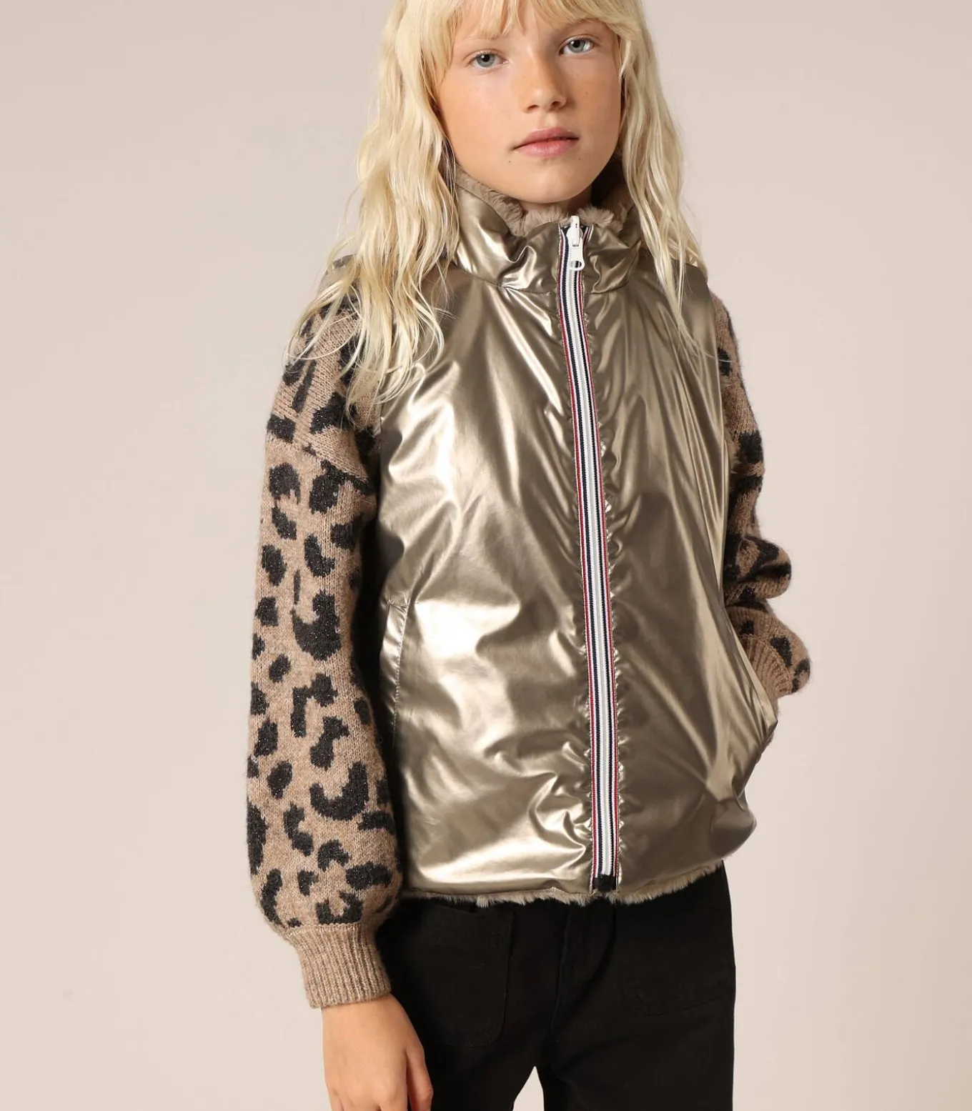 Be the first to review “NARA – Omkeerbaar mouwloos vest met imitatiebont en metallic voorkant” Reactie annuleren