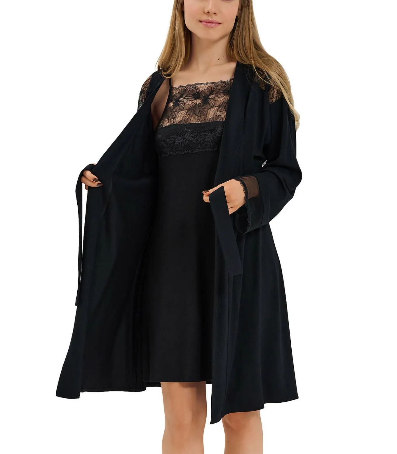 Lengte ca. 95 cm. Een verleidelijk en vooral elegant stuk, gemaakt van zacht modal met elastaan, kant en een transparant gaas dat het lichter en dus verleidelijker maakt. De kleur en stijl zijn perfect, in gedurfd, sexy zwart of feestelijk, verleidelijk rood.[Undress wordt alleen verkocht. Babydoll, schoenen en andere accessoires die het model op de foto’s draagt zijn niet inbegrepen].