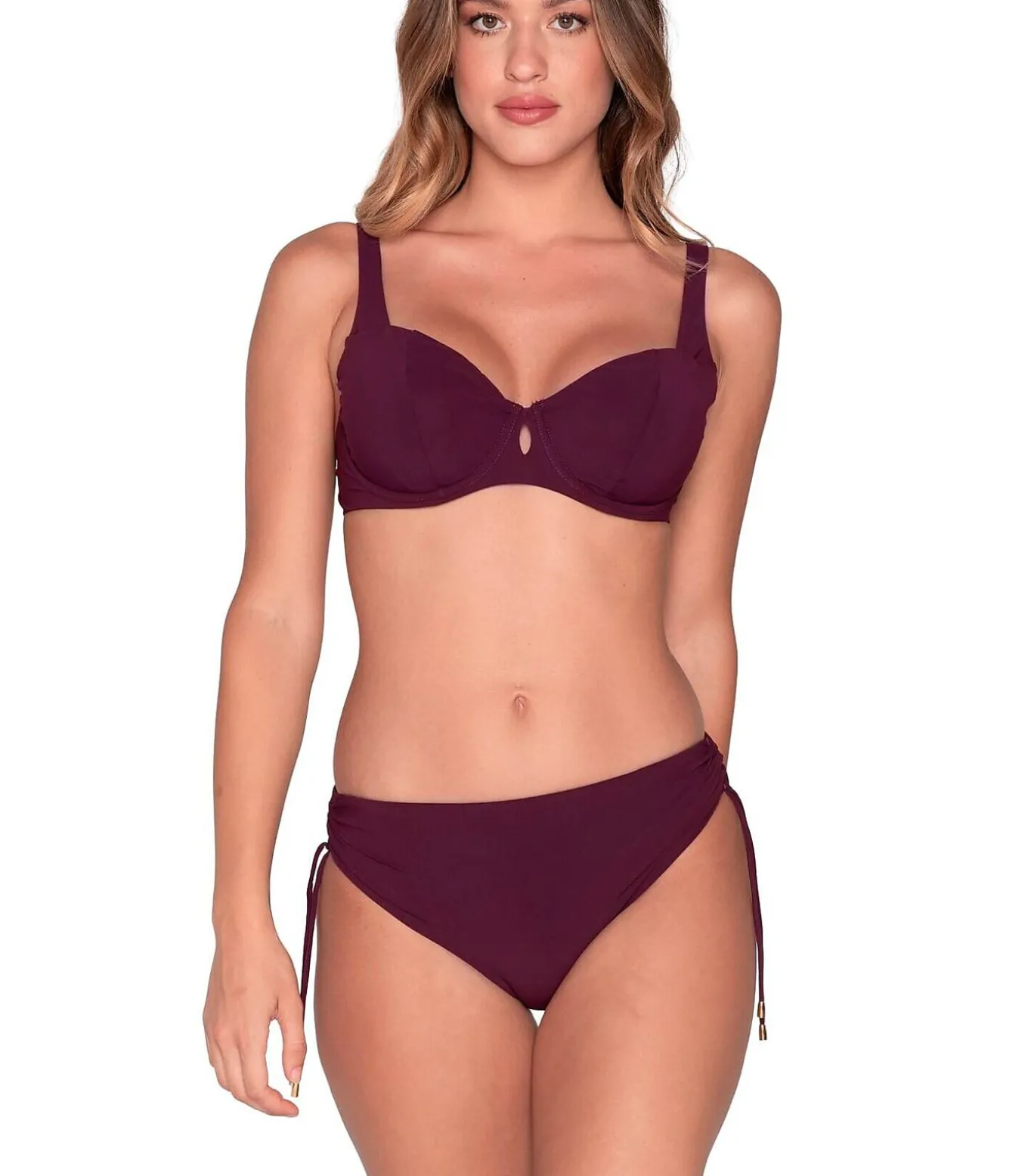 Beugel–balconnetzwemshort biedt goede ondersteuning en een natuurlijke ronding van de buste. Gemaakt van hoogwaardige Italiaanse Sensitive®–stof. De cups zijn licht gedrapeerd en een klein druppeldetail in het midden zorgt voor een vrouwelijke, elegante touch. De brede bandjes bieden optimaal comfort en ondersteuning. Het is gestructureerd en verfijnd, ideaal om je decolleté te laten zien en toch comfortabel te blijven. De bandjes zijn verstelbaar voor een perfecte pasvorm en breder in grotere maten voor meer comfort. Metalen clipsluiting op de rug.[Badpak topje apart verkrijgbaar. Topje en zwembroekje worden apart verkocht. Het zwembroekje, de sieraden en andere accessoires die het model op de foto’s draagt, zijn niet inbegrepen].
