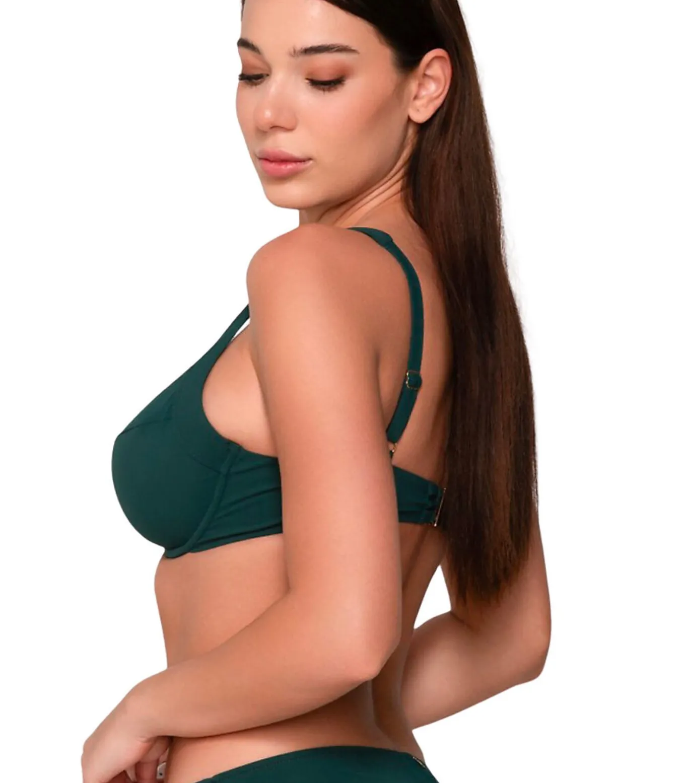Balconnet bh zwemkleding top biedt goede ondersteuning en een natuurlijke ronding. Gemaakt van hoogwaardige Italiaanse Sensitive®–stof. Een discreet strikje in het midden geeft het ontwerp een vrouwelijke touch. De cups zijn licht gerimpeld en gestructureerd voor extra ondersteuning. Dit model combineert elegantie en functionaliteit, perfect voor een geraffineerde look op het strand of bij het zwembad. De bandjes zijn verstelbaar voor een perfecte pasvorm en breder in grotere maten voor meer comfort. Metalen clipsluiting op de rug.[Zwemkleding topje apart verkrijgbaar. Topje en zwembroekje worden apart verkocht. Het zwembroekje, de sieraden en andere accessoires die het model op de foto’s draagt, zijn niet inbegrepen].