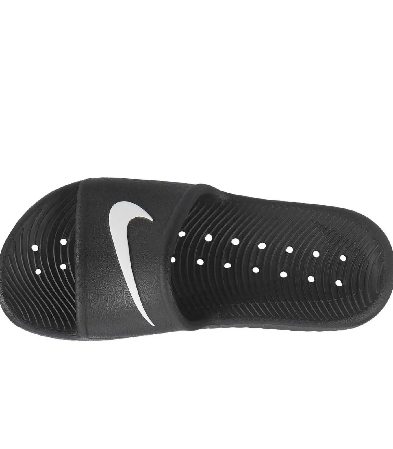 Kleur: zwart. Materiaal: synthetisch. Details: contrasterend Nike–logo, ergonomisch voetbed met antisliptextuur. Zool: duurzaam rubber voor extra duurzaamheid. Pasvorm: praktisch en comfortabel, ideaal voor op het strand, bij het zwembad of voor dagelijks gebruik. Gebruik: perfect voor actieve kinderen, geschikt voor zomer– en buitenactiviteiten dankzij het lichte en duurzame ontwerp.