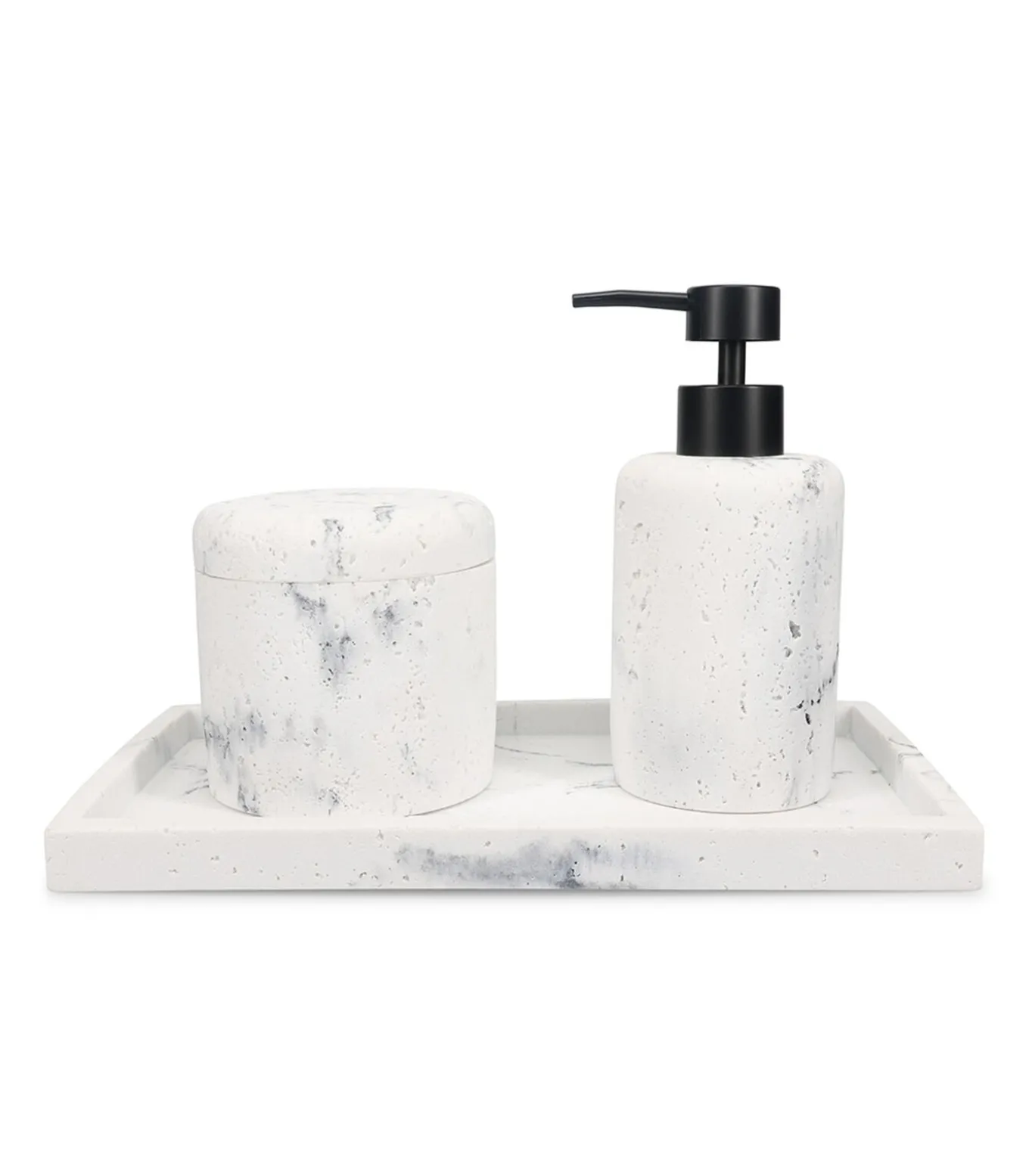 Suds is een badkamerreeks die gemaakt is uit een innovatief, waterbestendig en duurzaam materiaal dat de look van natuursteen combineert met de lichtheid van kunststof. Deze reeks voegt onmiskenbaar stijl toe aan iedere badkamer. De reeks bevat een zeeppompje, zeepbakje, beker, schaaltje, spiegel en toiletborstel. Leent zich tot mix & match. De finishing touch van een stijlvolle badkamerPolyresin wordt vaak gebruikt als materiaal voor beelden vanwege zijn duurzaamheid en sterkte. Het is een combinatie van steenslag, meestal marmer en polyurethaan, waardoor het materiaal een natuurlijke uitstraling heeft en tegelijkertijd lichter is dan echte steen.