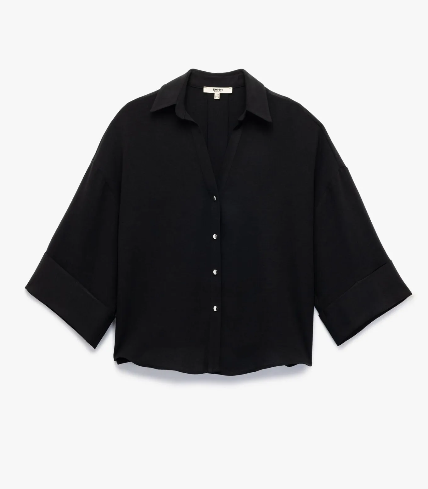 Deze oversized blouse combineert comfort en stijl dankzij de wijde pasvorm en 3/4 mouwen. De klassieke kraag en knoopsluiting voegen een elegante touch toe, ideaal voor zowel formele als casual gelegenheden. De zwarte kleur maakt het een veelzijdige keuze voor elke garderobe.