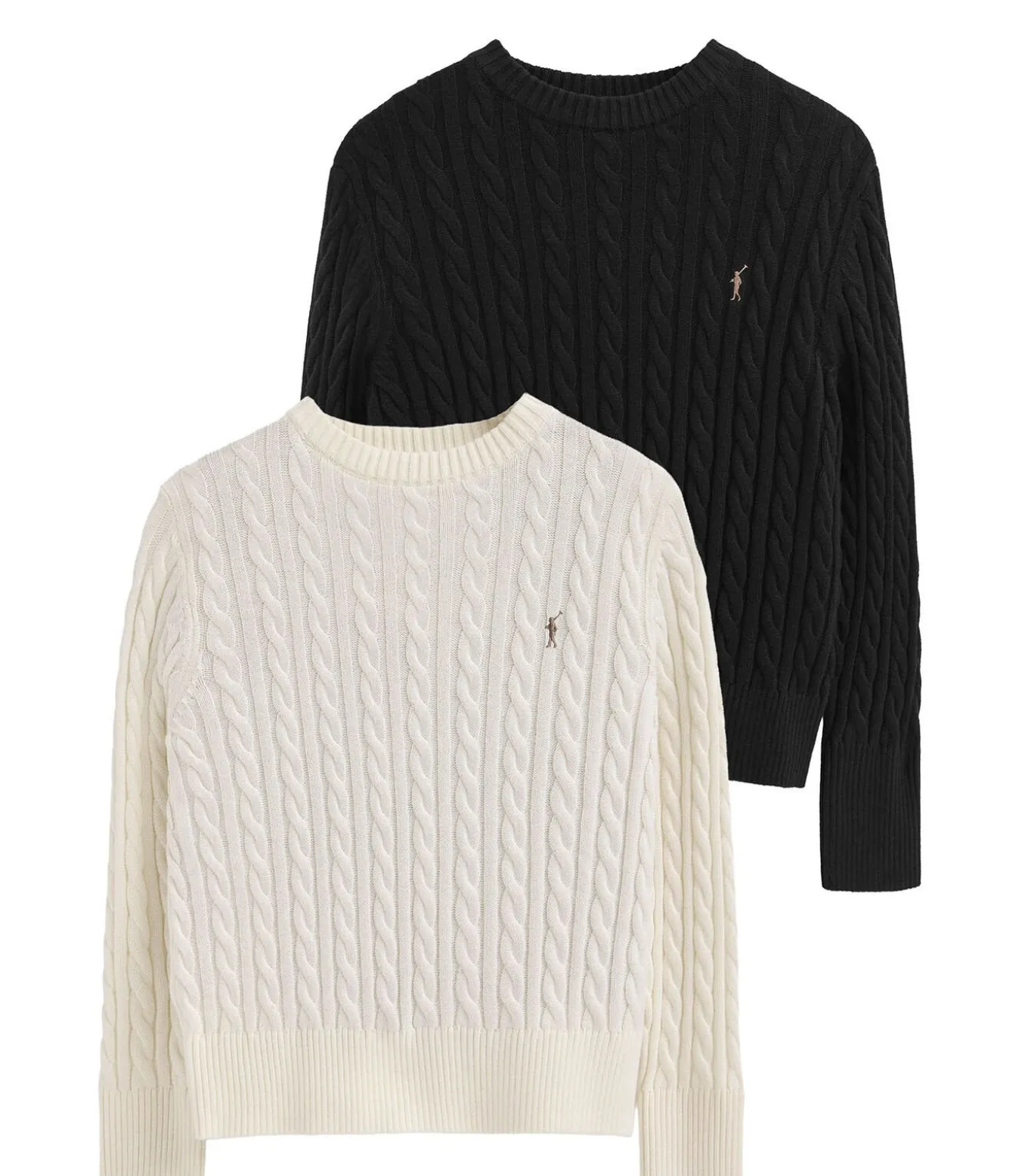 Pack van twee truien van wolmix in zwart en gebroken wit met ronde hals en geborduurd Rigby Go-logo