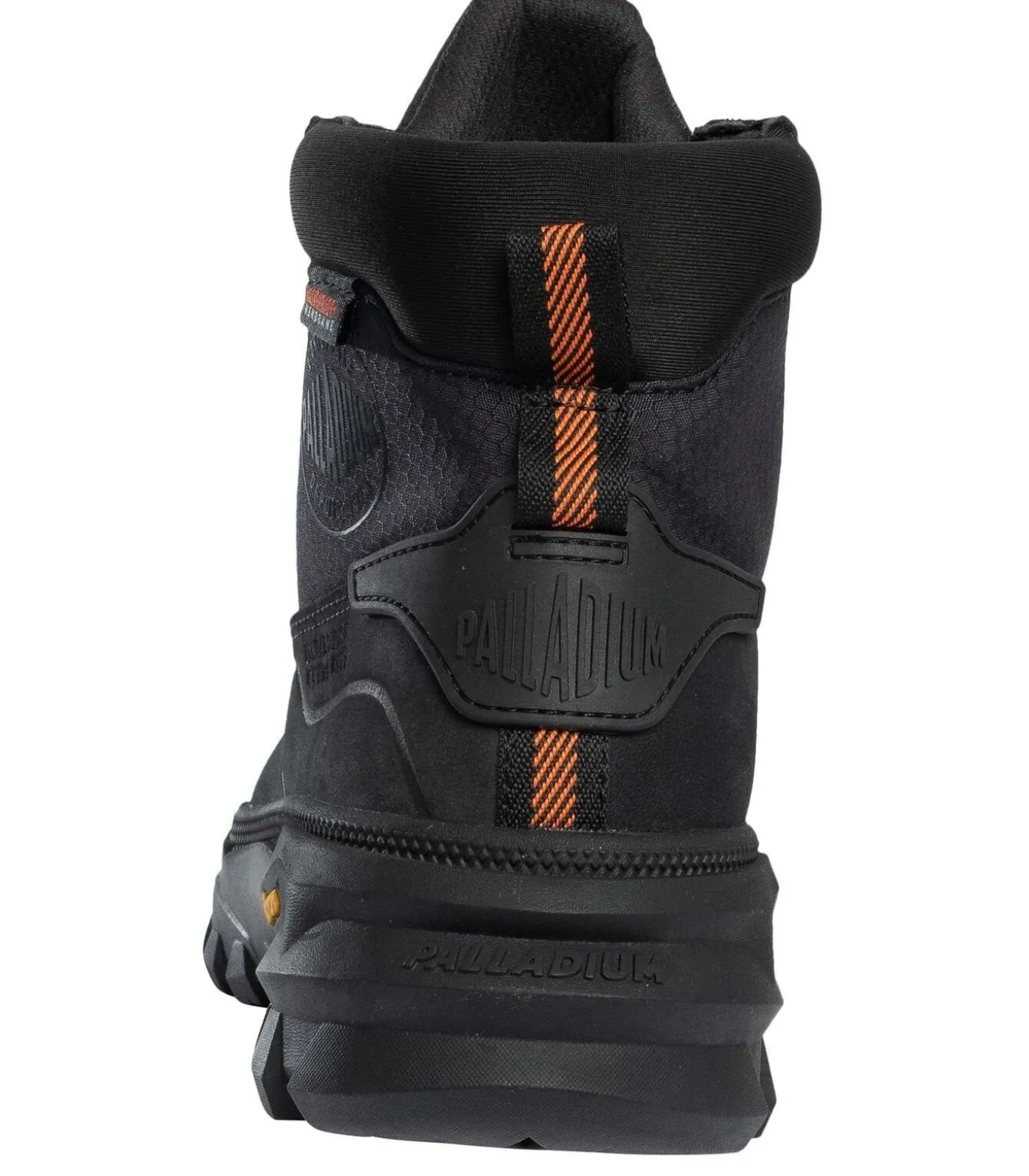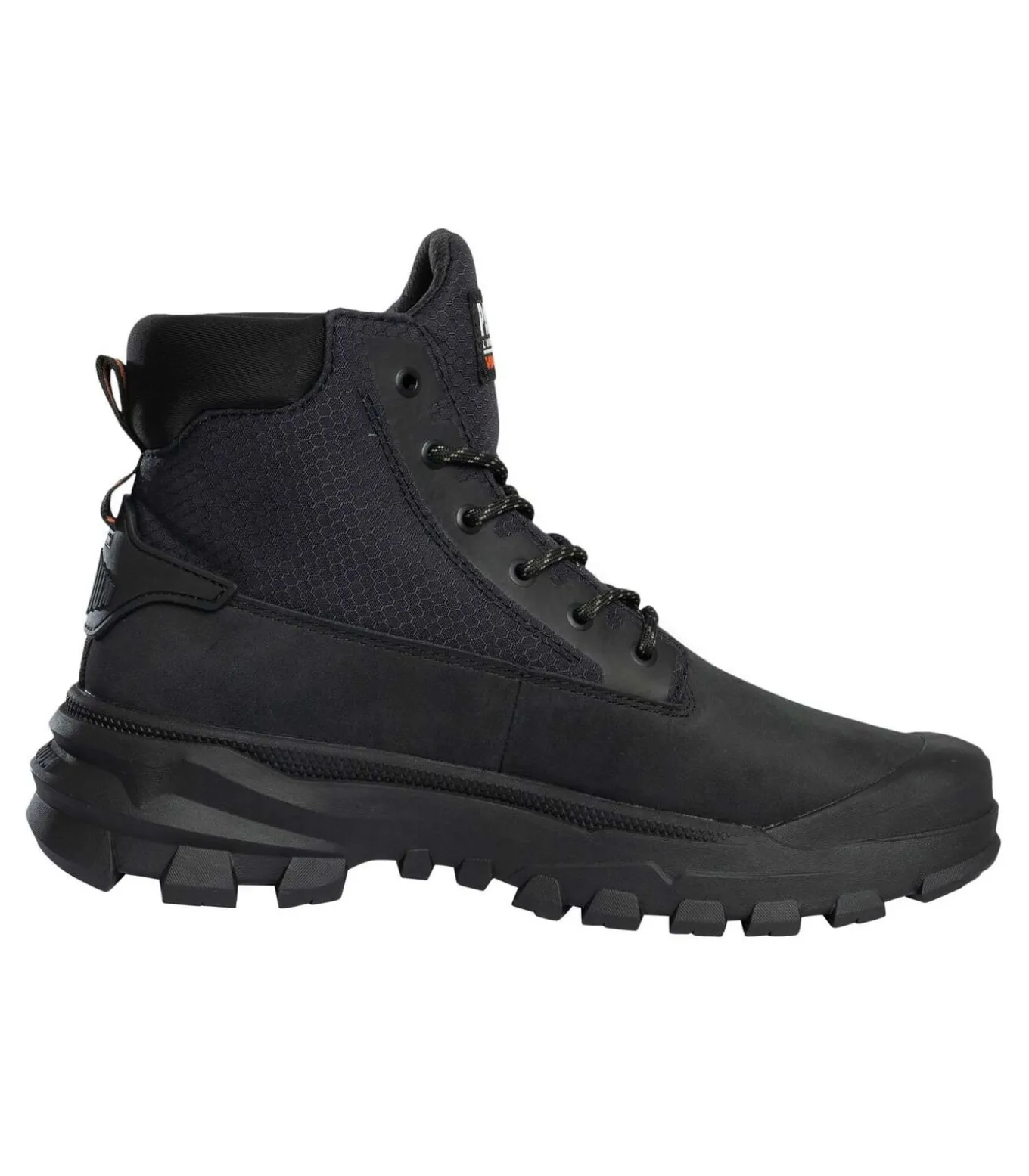 Palladium introduceert de Pallarider SC WP laarzen in het zwart: robuust, waterdicht en gemaakt om lang mee te gaan. Uitgerust met een Vibram–buitenzool voor uitzonderlijke grip en duurzaamheid, garanderen ze stabiliteit onder alle omstandigheden. De gewatteerde boord verbetert het comfort en het waterdichte plus–membraan garandeert droogheid en ademend vermogen. Afgewerkt met het kenmerkende Palladium–merk op de zijkant en tong, belichamen deze laarzen de toewijding van het merk aan robuuste prestaties en een eigentijds design, perfect voor zowel stedelijke als outdooravonturen.