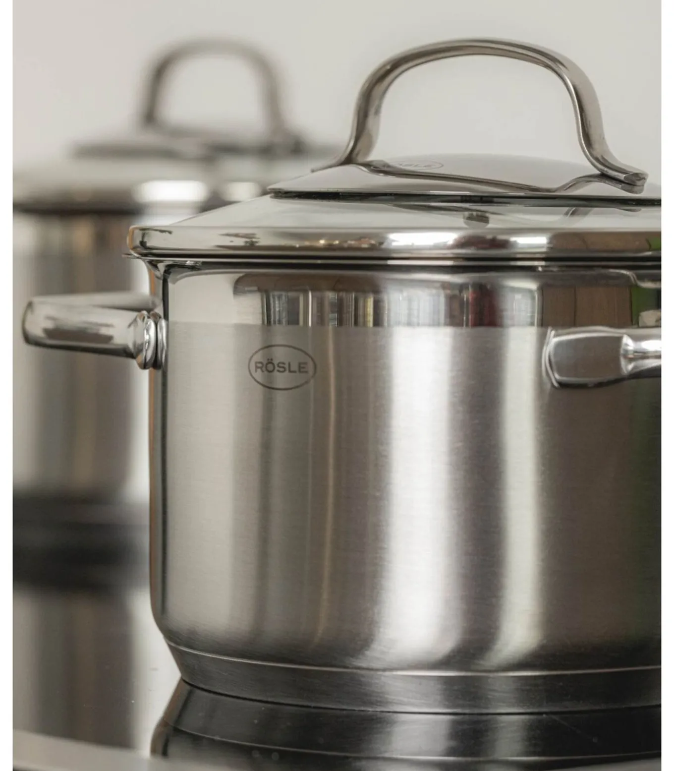 Met de Rosle 4–delige pannenset Elegance set kan je weer koken zoals dat bedoeld is. Zo hebben alle producten een fraai design en zijn ze erg multifunctioneel en duurzaam. Een voorbeeld daarvan is dat de handvatten op een slimme manier ontworpen zijn zodat deze niet heet worden tijdens het koken. De verschillende maten maken het mogelijk om voor elk gerecht een geschikte pan te kiezen. De glazen deksel van 16 cm past ook op de steelpan. Het roestvrijstale materiaal is daarnaast van zeer goede kwaliteit dat vaatwasserbestendig is.Deze Rosle pannenset bestaat uit: 1 steelpan = ø16 cm – 1.5 Liter1 kookpan = ø16 cm (met deksel) – 2 Liter1 kookpan = ø20 cm (met deksel) – 3.6 Liter1 kookpan = ø24 cm (met deksel) – 5.9 Liter