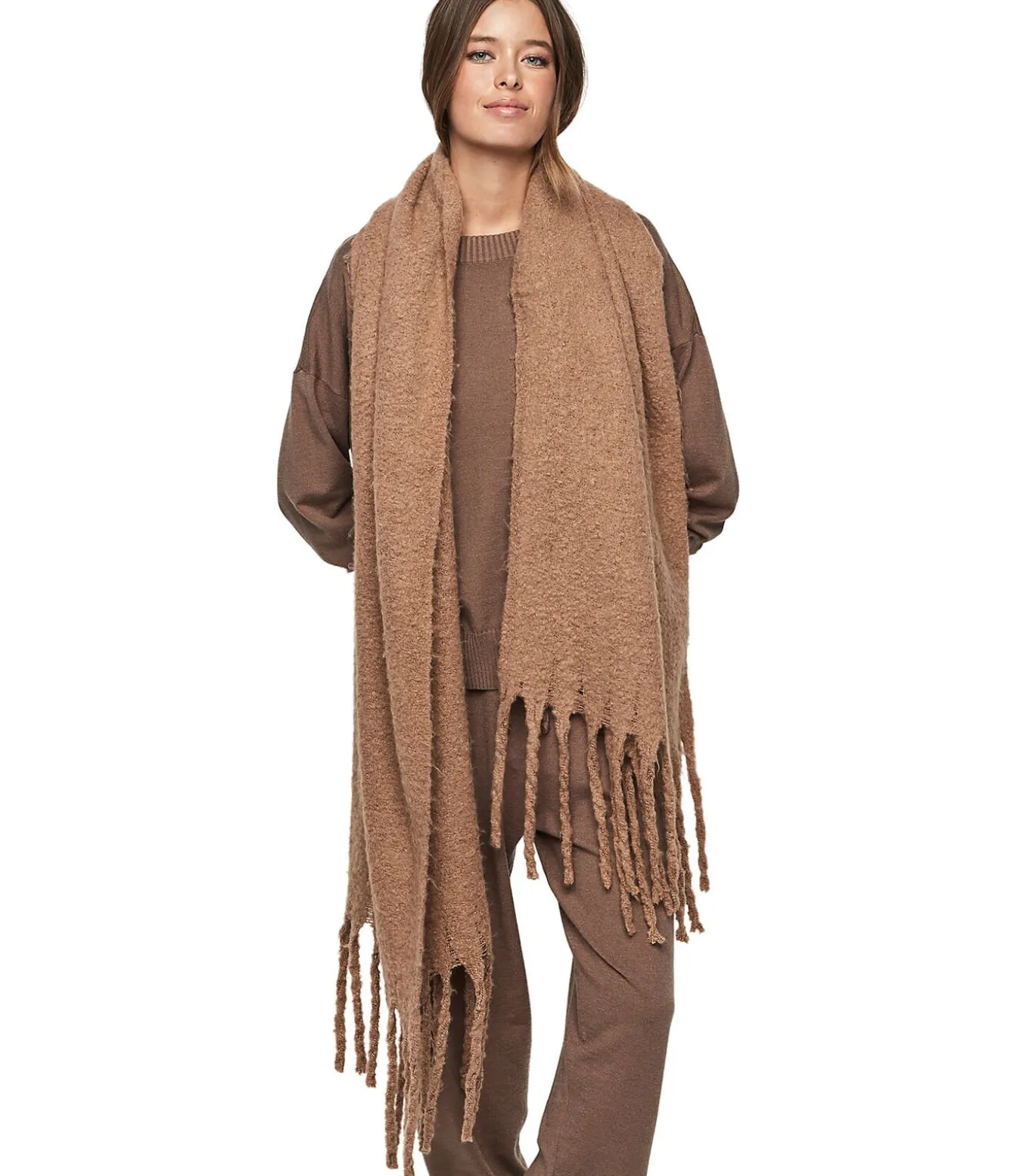 Ultrazachte sjaal, ideaal om je warm te houden in de winter. Hij is zeer comfortabel en beschermt je nek tegen wind en kou. Het geeft je een sobere en ultracomfortabele look voor je winterdagen. Vloeiende franjes aan de uiteinden.[Sjaal apart verkrijgbaar. Kleding en andere accessoires die het model op de foto’s draagt, zijn niet inbegrepen].