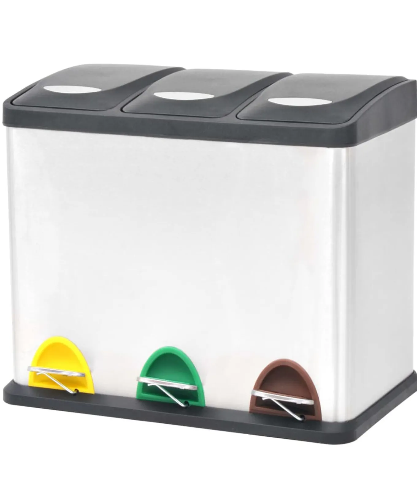 Deze chique, praktische recycle pedaalemmer is een must–have voor je keuken, woonkamer, kantoor, enz. De afvalbak is voorzien van 3 uitneembare binnenemmers voor het sorteren van het afval.