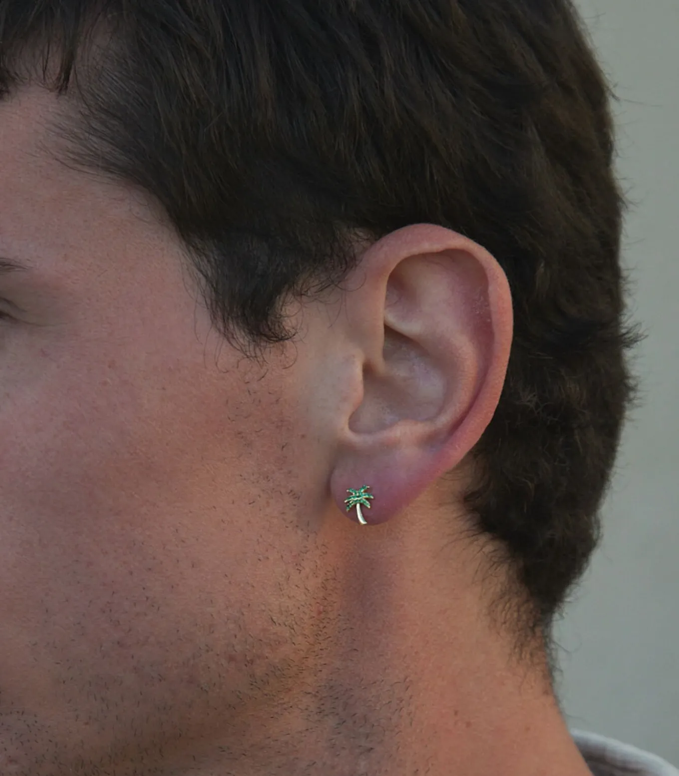 DETAILSHeren oorbel piercing Palmier in de vorm van een palmboom, vervaardigd in 925 Zilver met een 18k gouden plating en bezet met groene zirconia.Materiaal: 925 Zilver.Afwerking: 18k gouden plating.Stenen: Groene zirconia.Sluiting: Drukknop.Afmetingen: Lengte: 9,5mm Breedte: 7,5mm.Wordt per stuk verkocht.INSPIRATIEWij ontwerpen en vervaardigen sieraden met materialen van hoge kwaliteit en edelstenen.Neem deel aan het recyclingproces van Earcandy. Geef het product een tweede leven als je er moe van raakt! Voor meer informatie, lees ons recyclingproces.