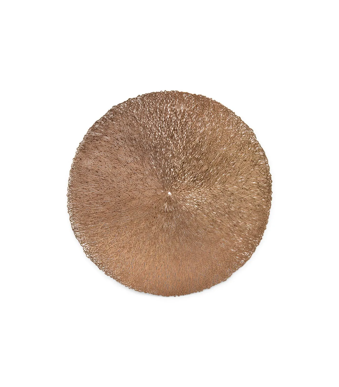 Maak binnen de Vene collectie van placemats kennis met deze ronde koperkleurige placemat met een diameter van 38cm. Deze placemat is gemaakt van hoogwaardig PVC. Hij voegt een vleugje geraffineerde warmte toe aan elke gedekte tafel. Elk stuk schittert met zijn koperen afwerking, ontworpen om elke maaltijd speciaal te laten voelen. Perfect voor intieme diners of grote feestjes! Deze met de hand afwasbare placemats bieden een uitnodigende mix van stijl en functionaliteit. Verwen jezelf met de verfijnde ervaring die je huis verdient.