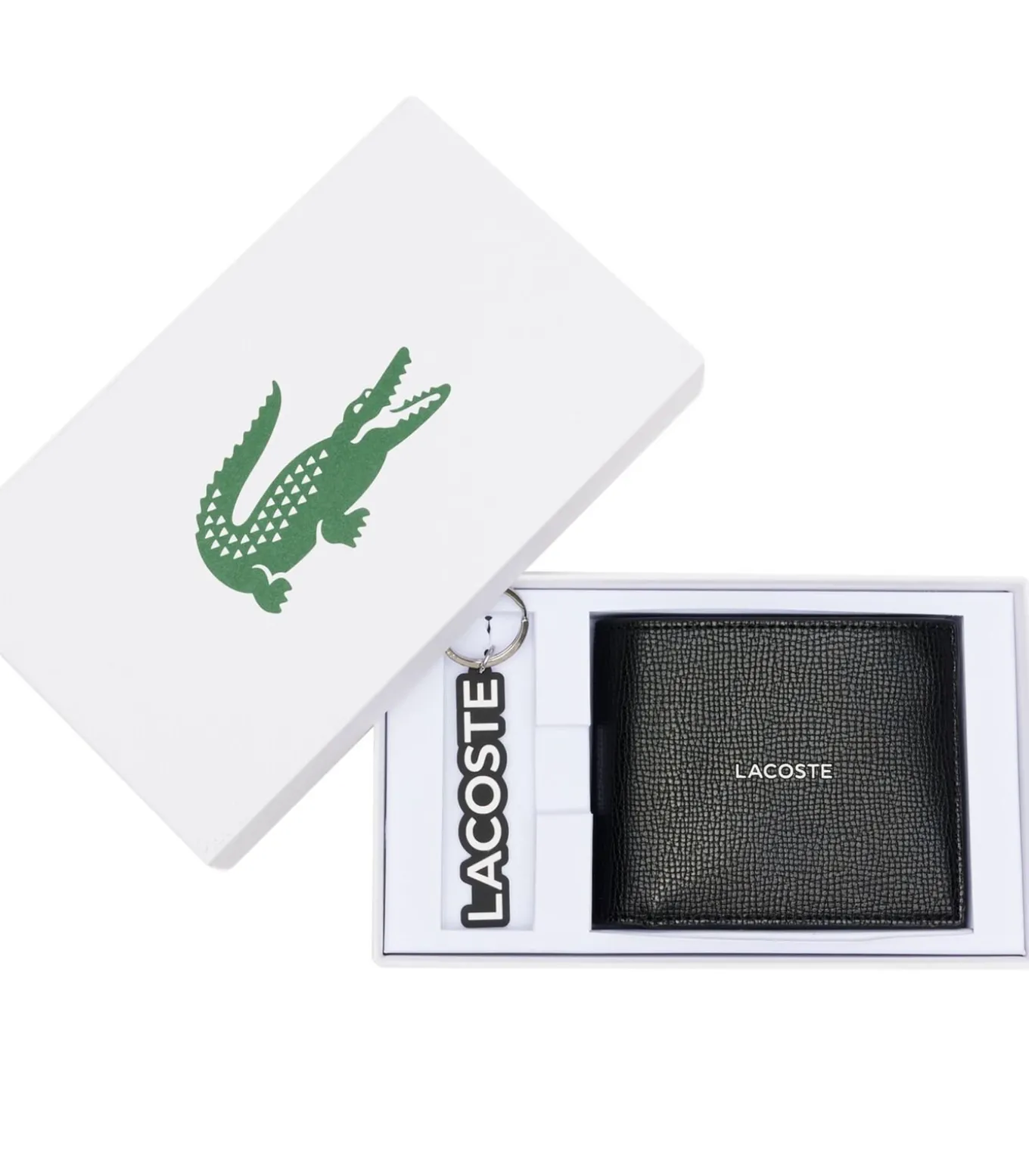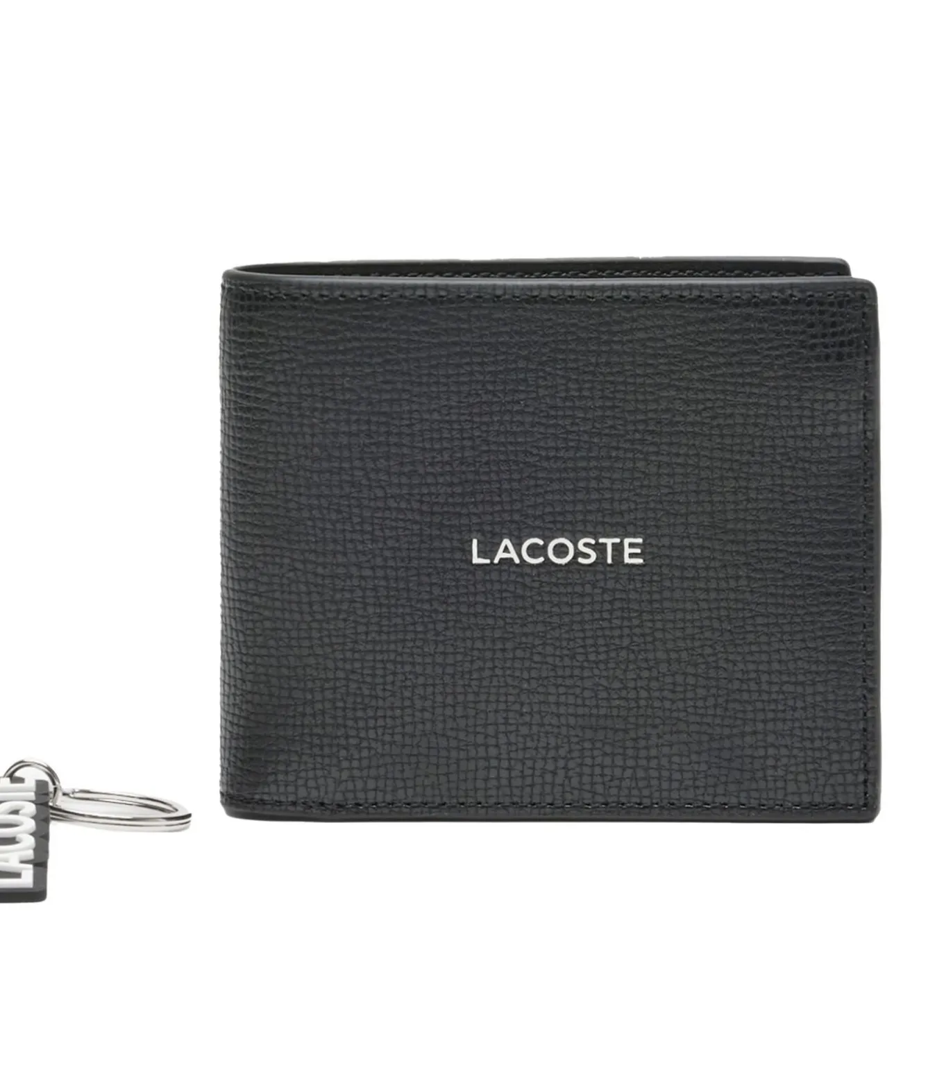 LACOSTE herenportemonnee met sleutelhanger. Eenkleurige portemonnee met logo op de voorkant. Hoogwaardige geschenkset voor dagelijks gebruik.