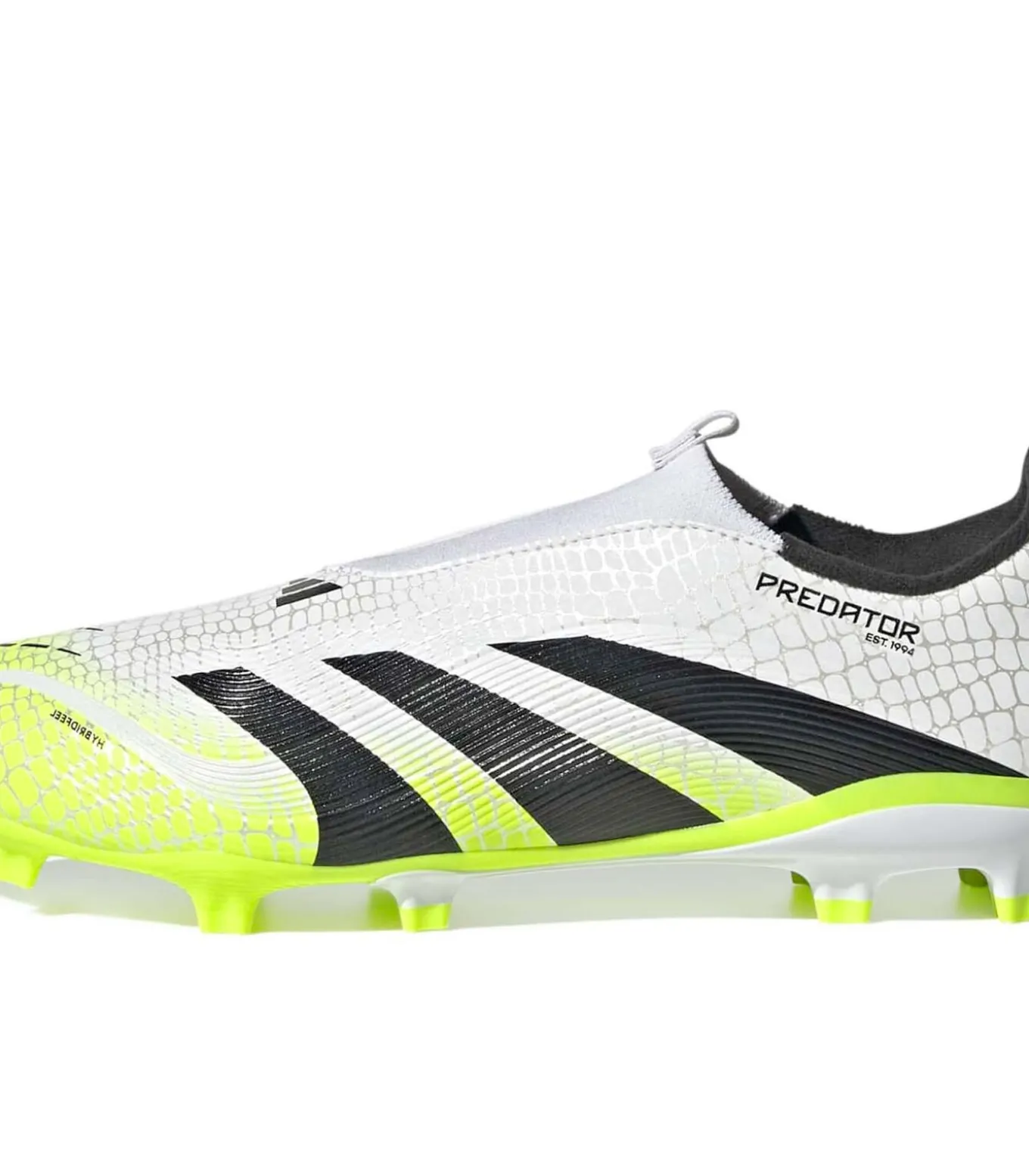 Kleur: Cloud White/Core Black/Lucid Lemon Pasvorm: Regular Sluiting: Zonder veters Bovenwerk: Hybridfeel met all–over 3D–textuur, gebreide kraag en gripvaste Strikescale–noppen Buitenzool: Controlplate voor stevige ondergrond/multi–surface Veld: Stevige ondergrond en kunstgras (FG/MG) Details: Zonder veters League Junior–versie voor een zuivere touch en maximale controle; Strikescale–elementen voor grip en schietnauwkeurigheid; gestructureerd bovenwerk voor een speels gevoel; veelzijdige buitenzool voor stabiliteit op meerdere ondergronden Gebruik: Ideaal voor jonge spelers die zonder veters precisie, controle en bewegingsvrijheid willen op verschillende velden