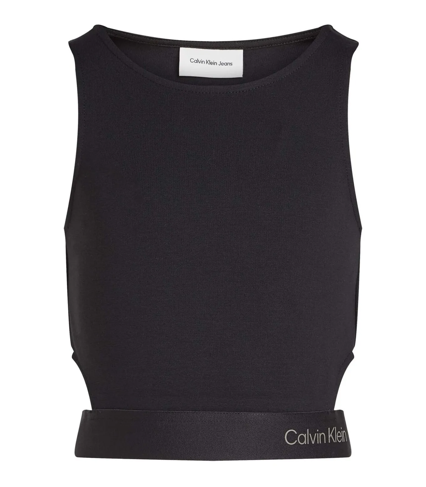 Kleur: CK Black Samenstelling: 66% viscose, 30% polyamide, 4% elastaan Mouwen: Mouwloos Halslijn: Ronde hals Pasvorm: Skinny Details: Gemaakt van Milano–steek met logotape op de zoom, met zijopeningen en een cropped fit die tot op de taille valt. De stof bevat CIRCULOSE®–viscose, afkomstig van gerecycled textielafval. Duurzaamheid: Bevat CIRCULOSE®–viscose, verkregen uit gerecycled katoen (voor en na consumptie). Gebruik: Perfect voor casual en moderne looks, te combineren met een high–waist broek of rok.