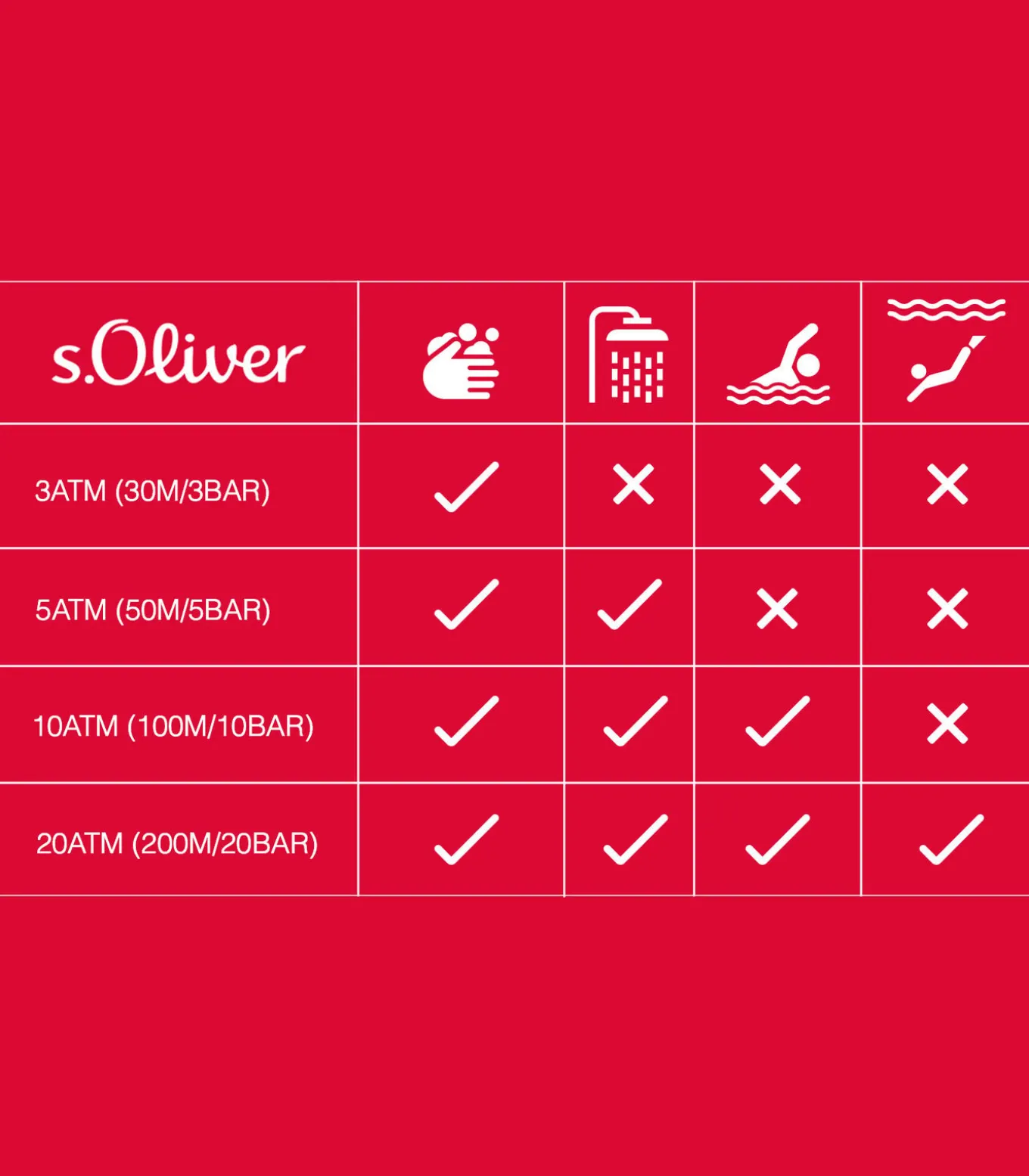 Tijdloos design en hoogwaardige afwerking – dit horloge met kunstleren band voor dames is het perfecte accessoire. Naast de hoge kwaliteit staat s.Oliver Time voor een sportieve en toch chique stijl. De glanzende, ronde roestvrijstalen kast heeft een wijzerplaat met sunray–effect, versierd met diamanten stenen. De kastdiameter is ca. 36 mm. Het hoogwaardige mineraalglas en het Japanse uurwerk maken dit horloge bijzonder duurzaam en precies De armband heeft een lengte van 14–18 cm en kan individueel aan de pols worden aangepast De gesp maakt het om– en afdoen van het dameshorloge eenvoudig Waterbestendigheid tot 3 bar rondt het design af. Het horloge is dus spatwaterdicht. Het horloge is dus spatwaterdicht Het accessoire wordt geleverd in een bijpassende doos om op te bergen, die ook ideaal is als cadeauverpakking