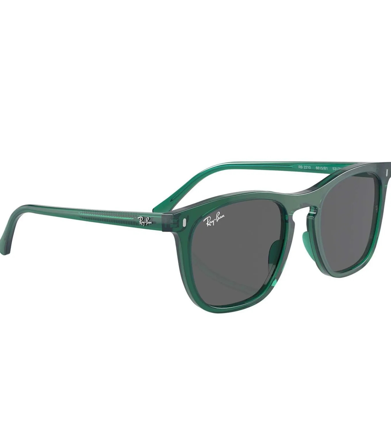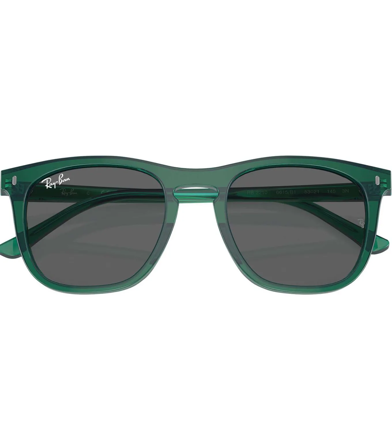 De Ray–Ban RB2210 Square zonnebril in Transparent Green heeft een opvallend, vierkant montuur met royale gezichtsbedekking, perfect voor mensen die op zoek zijn naar een statement piece. De hoge brug zorgt voor een comfortabele pasvorm, vooral voor mensen met een hogere neusbrug. De groene lenzen bieden optimale UV–bescherming en verminderen schittering, terwijl de branding op de lens en zijkant de kenmerkende Ray–Ban–stijl laat zien. Deze zonnebril is ideaal voor zowel dagelijks gebruik als buitenactiviteiten. Maat: Standaard. Lenshoogte: 46,7 mm, Lensbreedte: 53–21 mm, Lengte pootjes: 145 mm.
