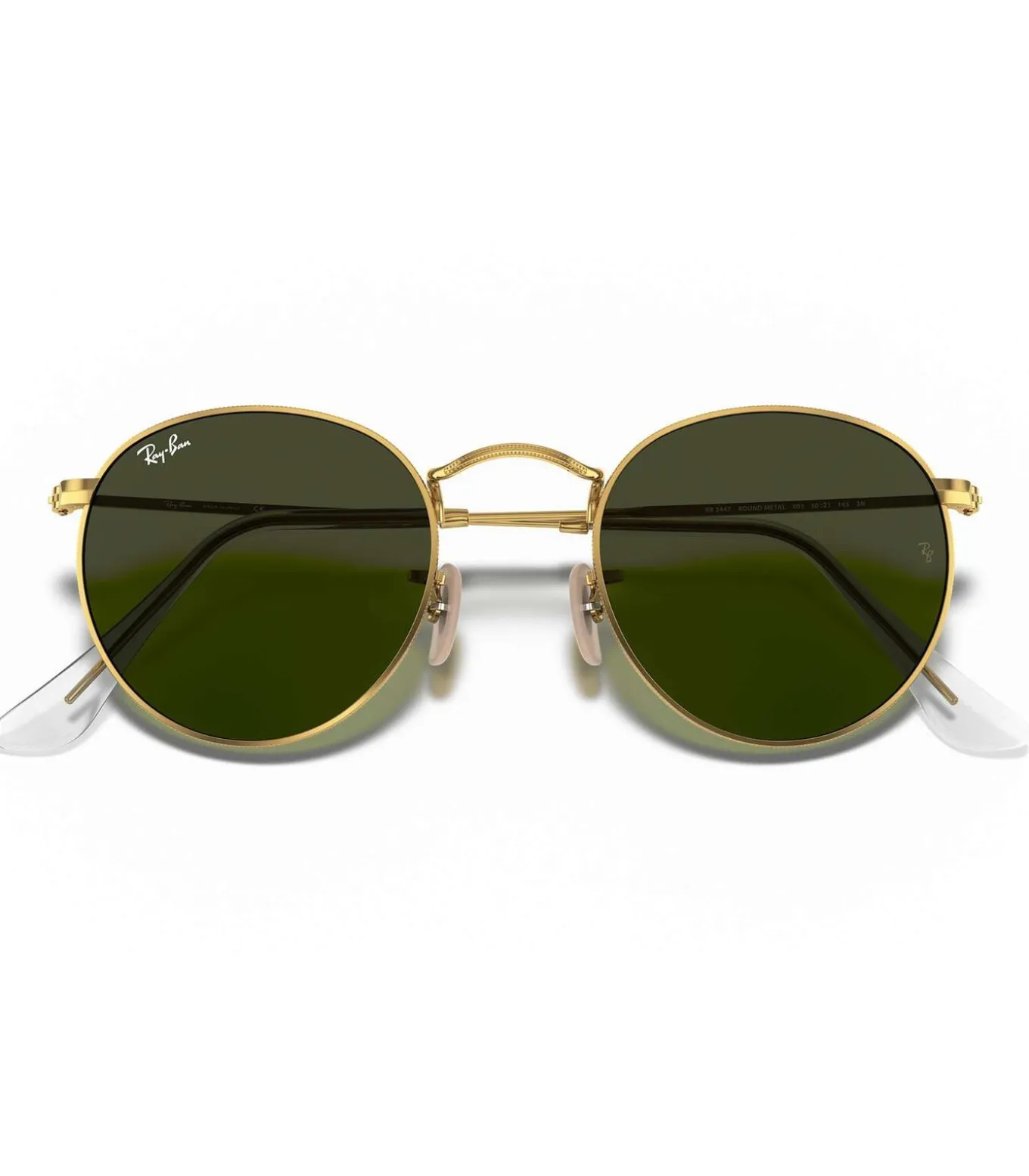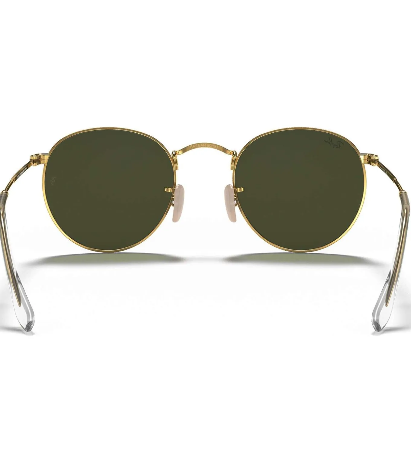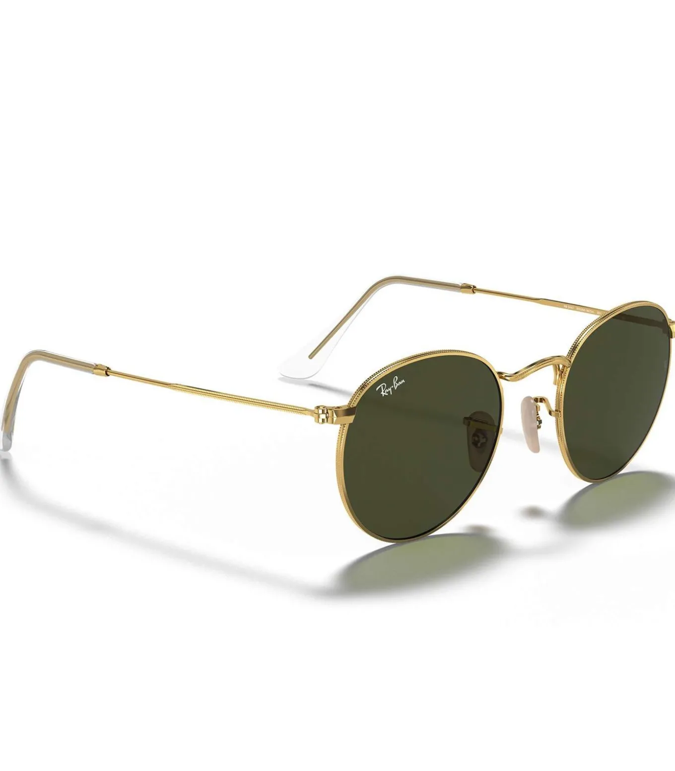 De RB3447 ronde platte zonnebril van Ray–Ban heeft lenzen van een merk en is geïnspireerd op de tegencultuur van de jaren 60. Deze iconische, lichtgewicht bril heeft een opvallende ronde vorm, verstelbare neuskussentjes en is inclusief koffer. Lenzen: Green Classic G–15.