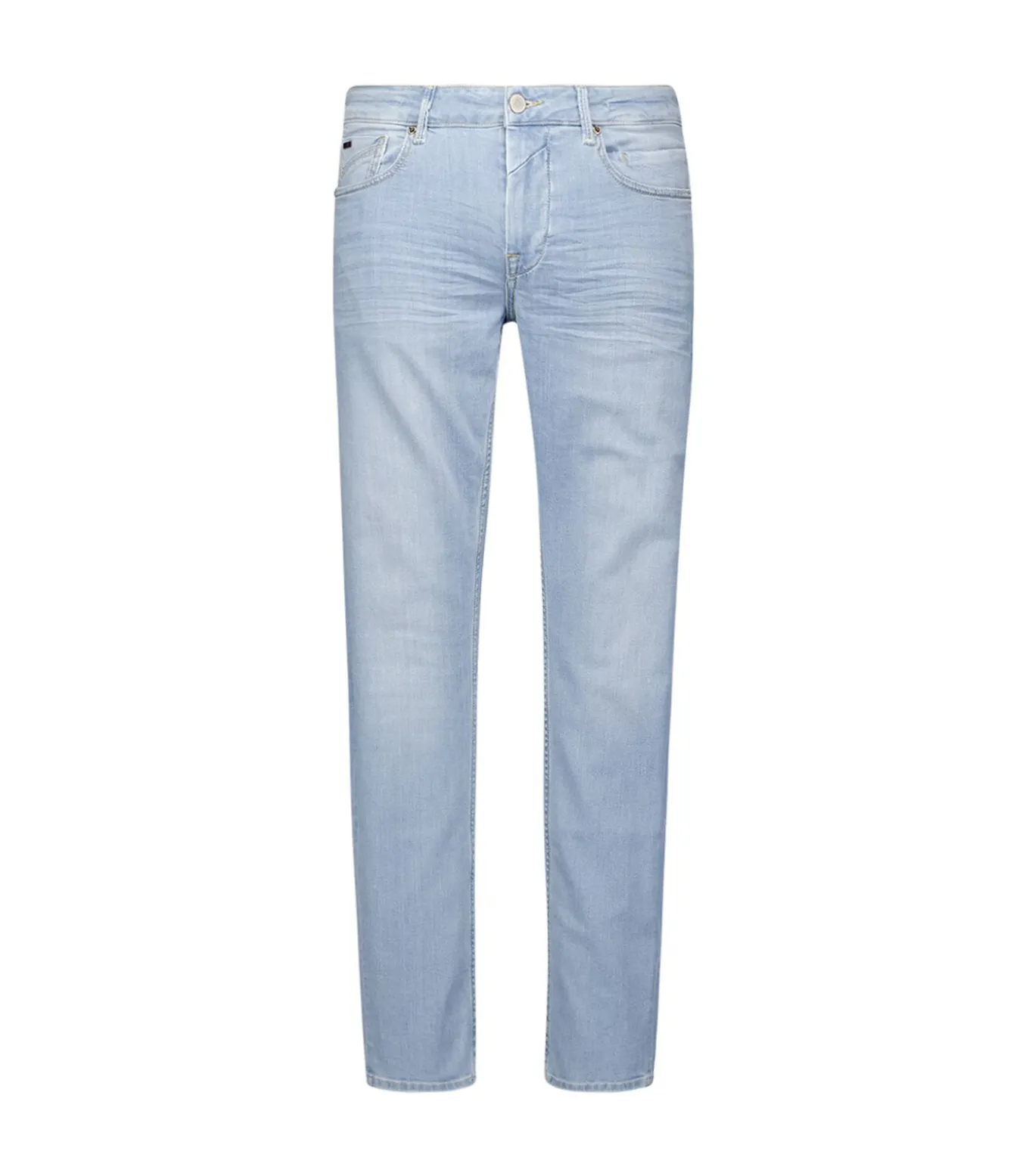 Deze regular fit jeans van stretchdenim heeft een schone wassing en een comfortabele middelhoge taille. Voorzien van een verborgen telefoonzak, subtiele NXS–branding en een klassieke 5–pocket stijl.