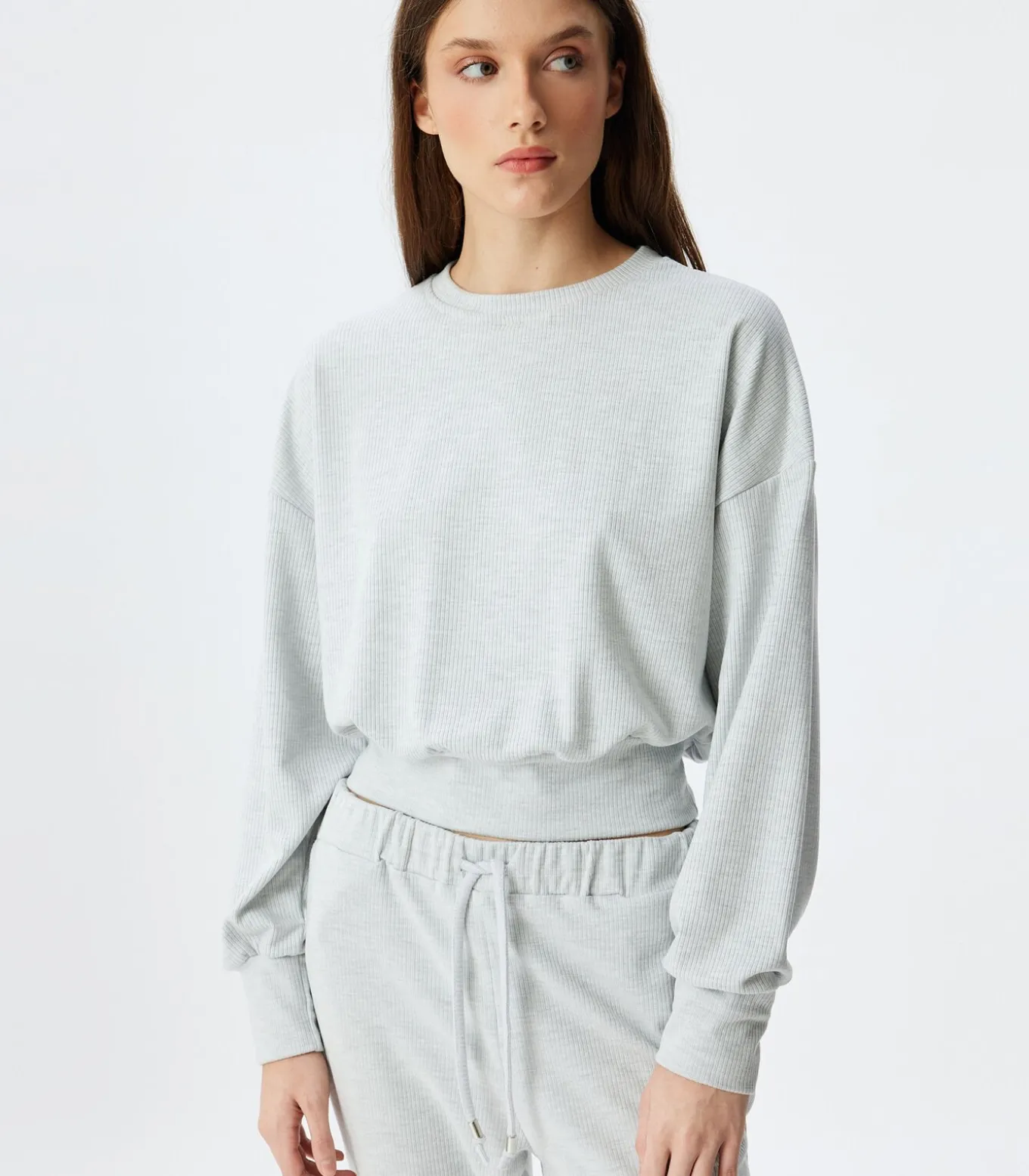 Relax zonder zak Normale lengte Lange mouw Ronde kraag Pyjama’S Gebreide Top