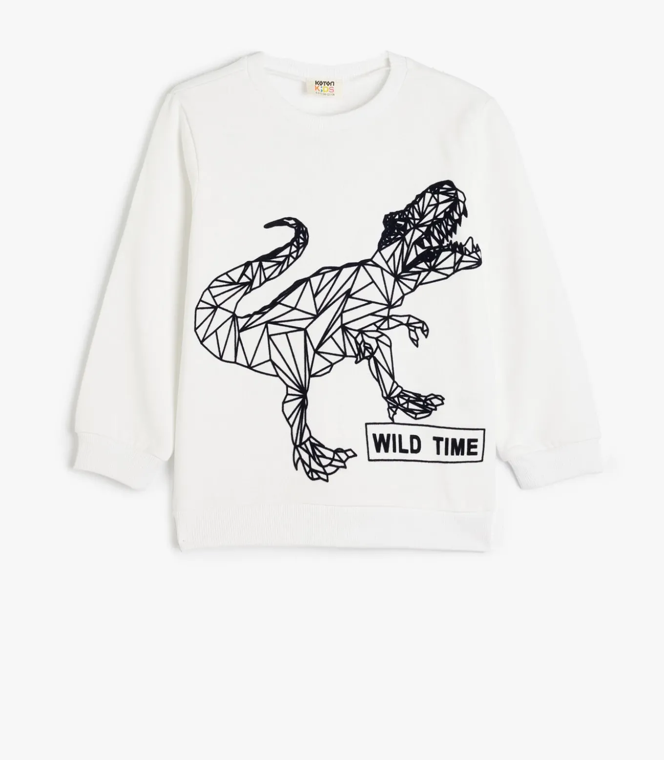 Bci–katoen Met drukwerk Flock afdruk Dinosaurus Normaal Basis zonder zak Normale lengte Lange mouw Ronde kraag Sweatshirt