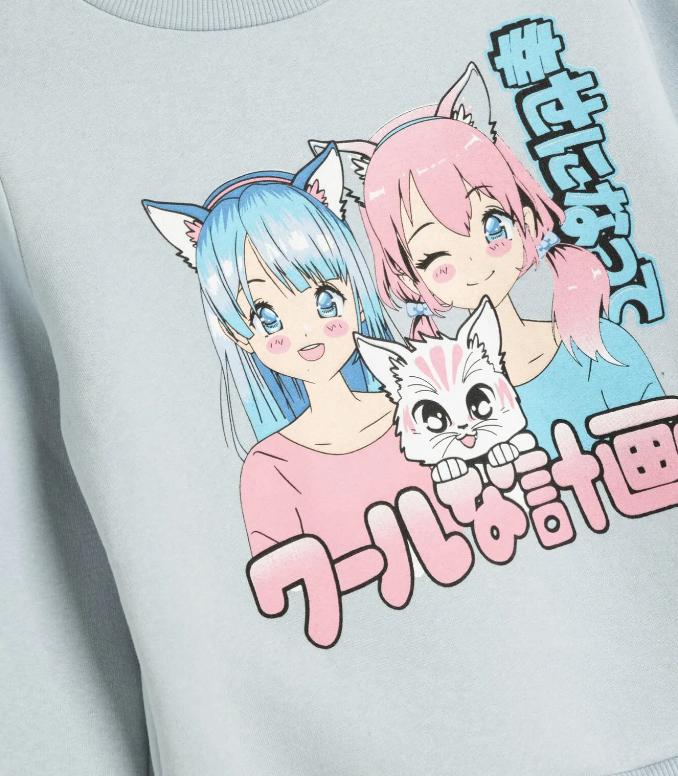 Pigment afdruk Anime Normaal Boxy zonder zak Normale lengte Lange mouw Ronde kraag Sweatshirt