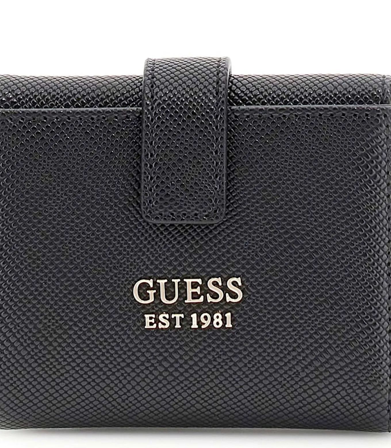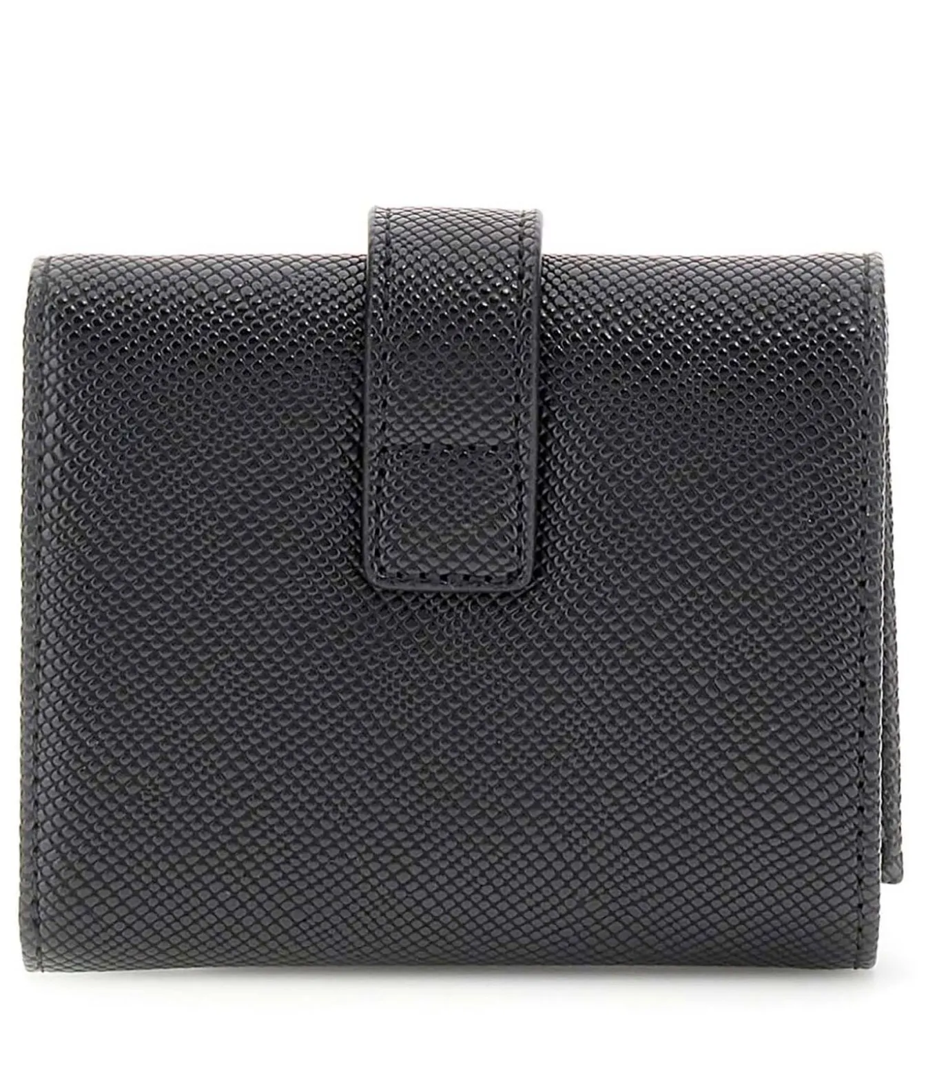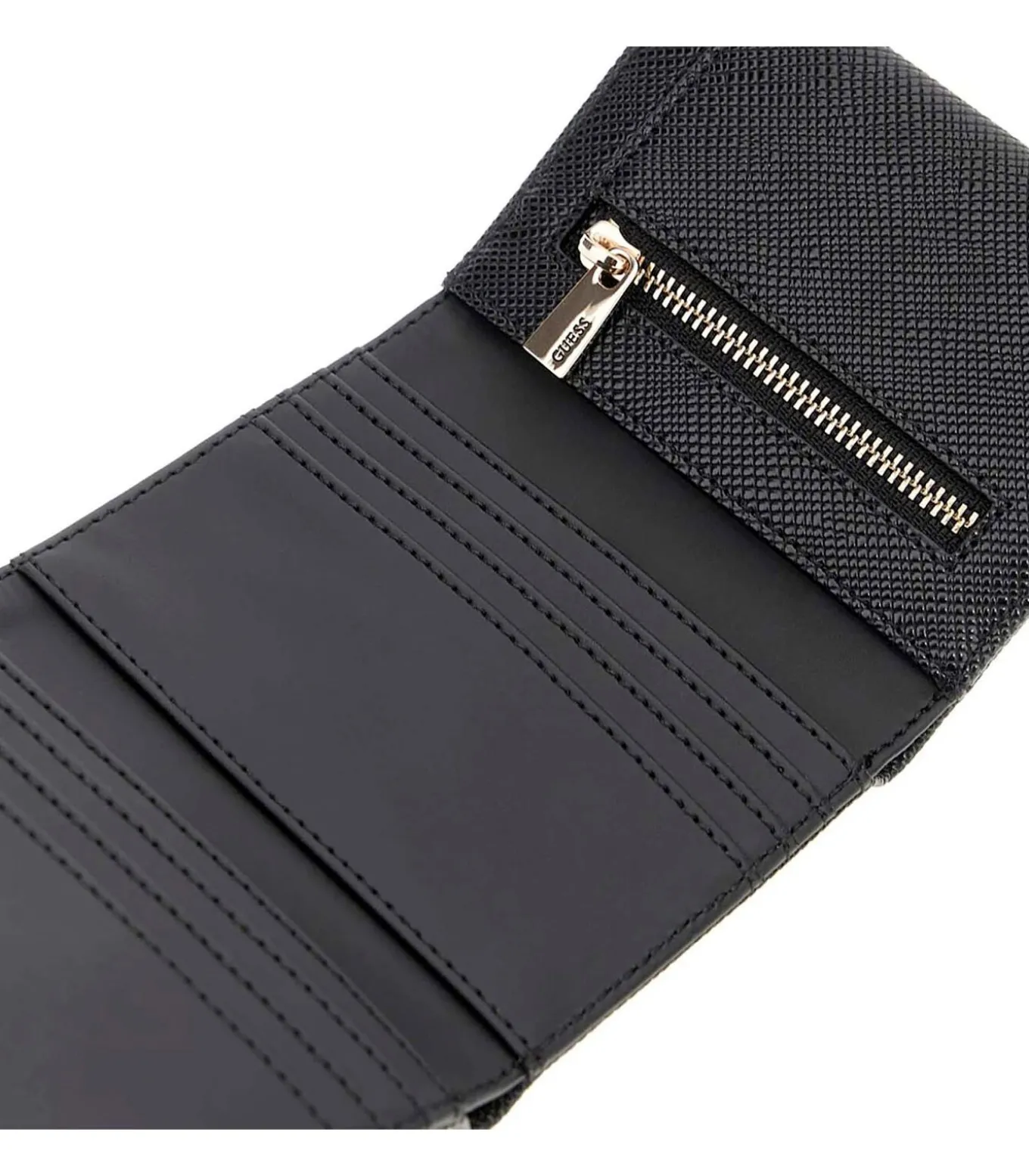 Kleur: Zwart Samenstelling: 100% Polyurethaan Sluiting: Ritssluiting Interieur: Hoofdvak met muntvak en creditcardvakjes Afmetingen: 11 x 9 x 2 cm Details: Rosalba mini–portemonnee van imitatieleer met saffiano–afwerking, lichtgouden metalen hardware en metalen logo–opschrift op de voorkant Gebruik: Elegant en praktisch, ideaal voor het organiseren van kaarten en munten in een kleine ruimte, perfect te combineren met compacte tassen of om altijd bij je te dragen