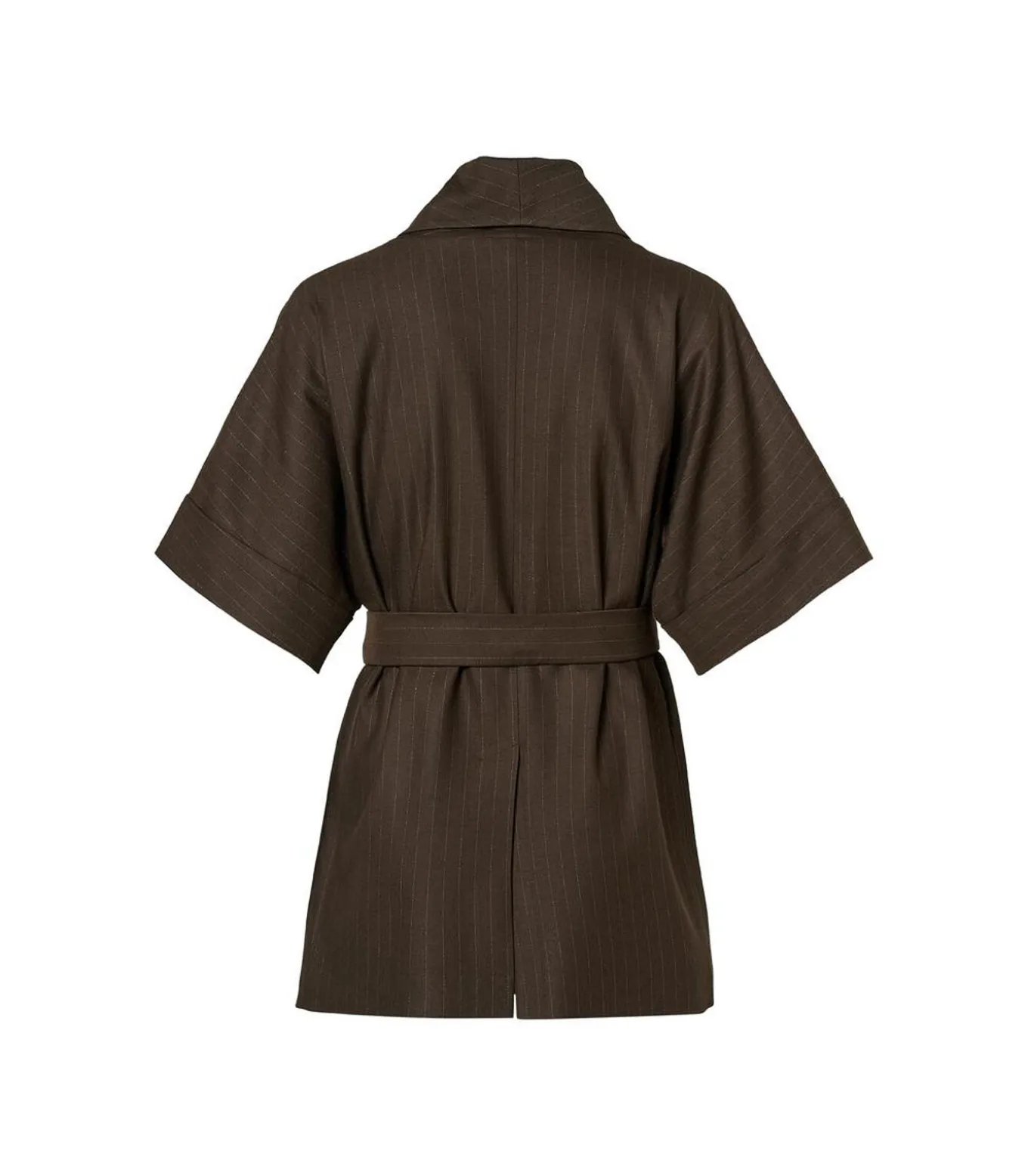 De Roseline blazer is een elegante en veelzijdige damesblazer die moeiteloos stijl toevoegt aan elke outfit. Deze donkerbruine blazer met subtiele offwhite krijtstreep straalt tijdloze klasse en ingetogen luxe uit. Dankzij de overslagsluiting met bijpassende strikceintuur wordt de taille op vrouwelijke wijze geaccentueerd, terwijl de lichte schoudervullingen zorgen voor een mooi gestructureerd silhouet. Deze getailleerde blazer is perfect voor zowel zakelijke gelegenheden als informele momenten. Combineer met een pantalon voor een complete power suit of draag casual met jeans voor een verfijnde look.De Roseline blazer is vervaardigd van een hoogwaardige materiaalmix van 63% polyester, 34% viscose en 3% elastaan. Polyester zorgt voor duurzaamheid en vormvastheid, viscose geeft de blazer een zachte, soepele feel en de toevoeging van elastaan biedt extra comfort en bewegingsvrijheid. De gladde voering van 100% polyester zorgt ervoor dat de blazer mooi valt en prettig aanvoelt op de huid. De combinatie van het klassieke krijtstreep dessin, de flatterende pasvorm en het comfortabele materiaal maakt de Roseline blazer tot een stijlvolle keuze voor elke gelegenheid.