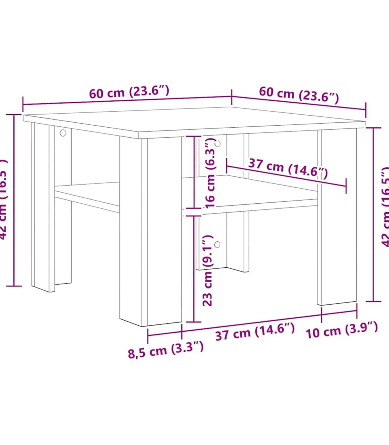 Afmetingen: 60 x 60 x 42 cm (B x D x H)