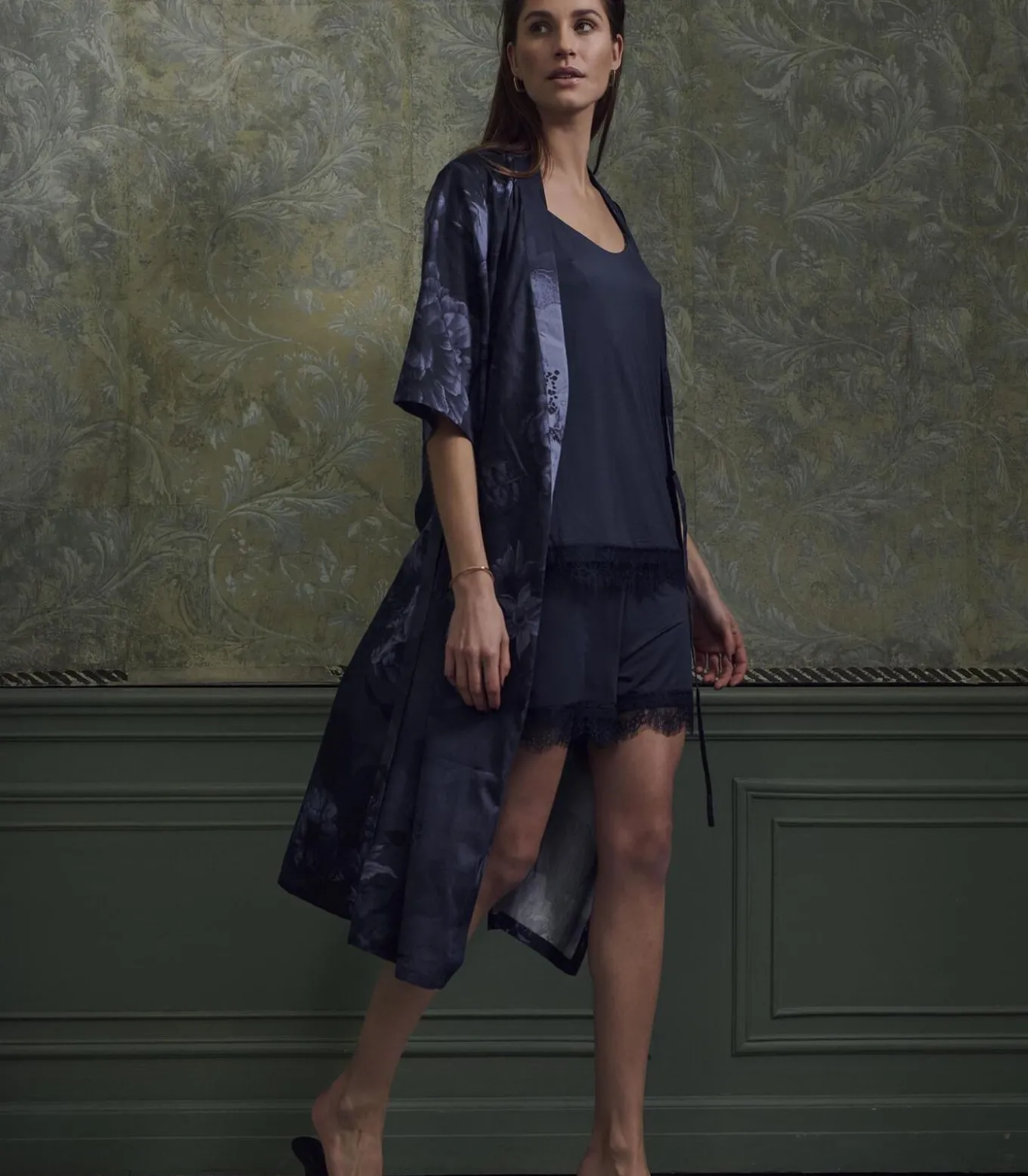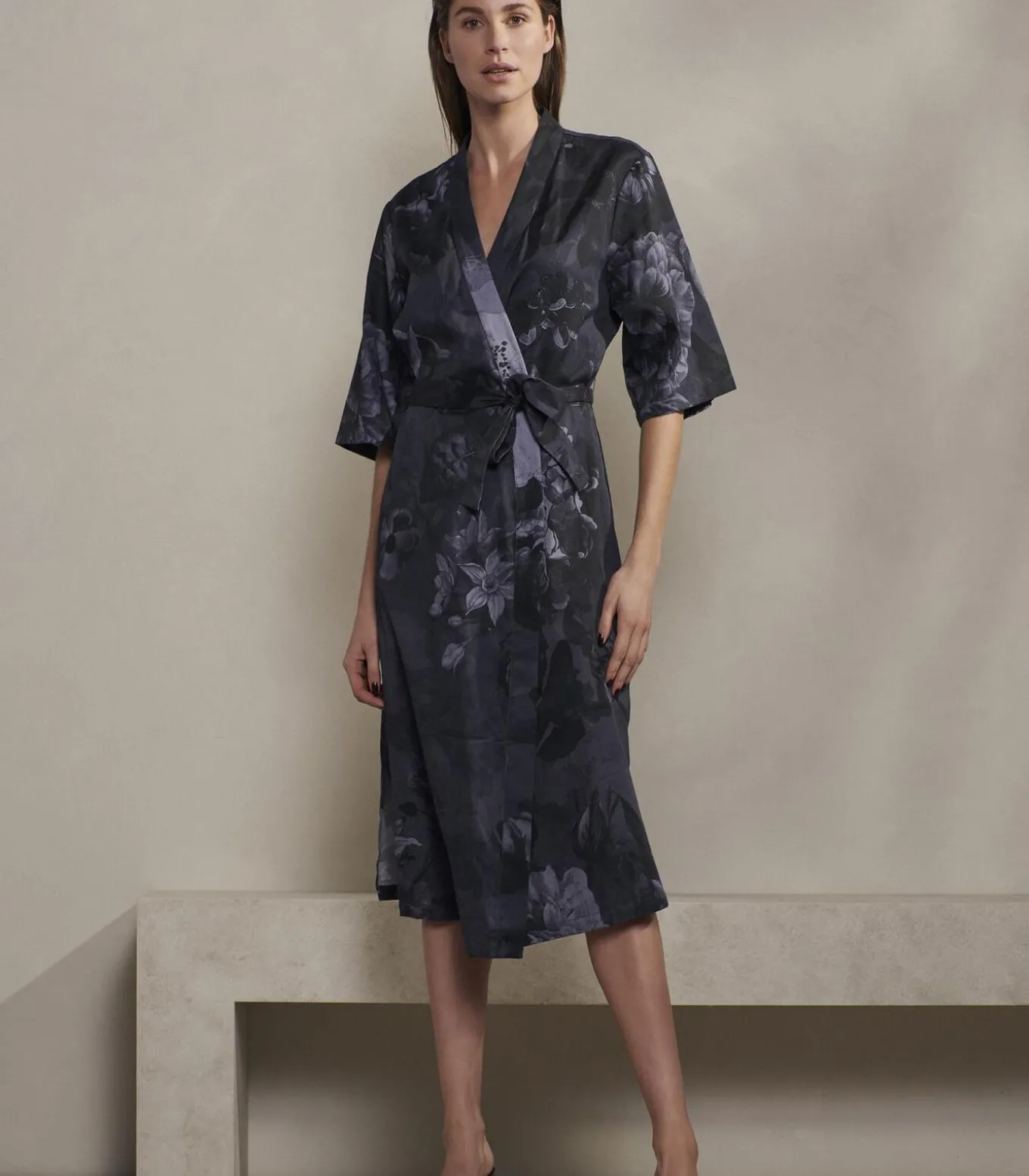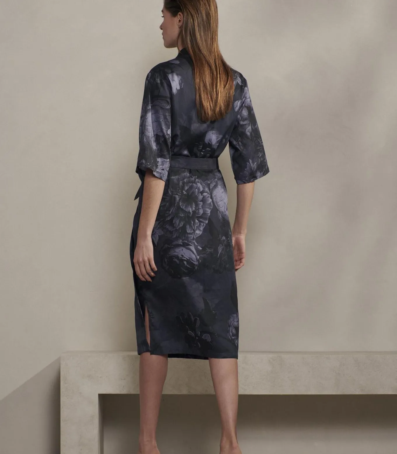 Met deze kimono van ESSENZA stap je elke ochtend sierlijk uit bed. De Floor print die prijkt op deze kimono is een afgeleide van onze bestseller print Fleur, maar dan uitgevoerd in tonale kleuren. Hierdoor krijg je een prachtige, subtiele en klassieke print die zorgt voor een instant chique look. De kimono valt tot op de knie, heeft elegante driekwartsmouwen en sluit met een strikceintuur. Gemaakt van 100% katoen satijn en dat zit heerlijk en kleed ook nog eens mooi af. De stof voelt soepel, glad en heeft een lichte glans.