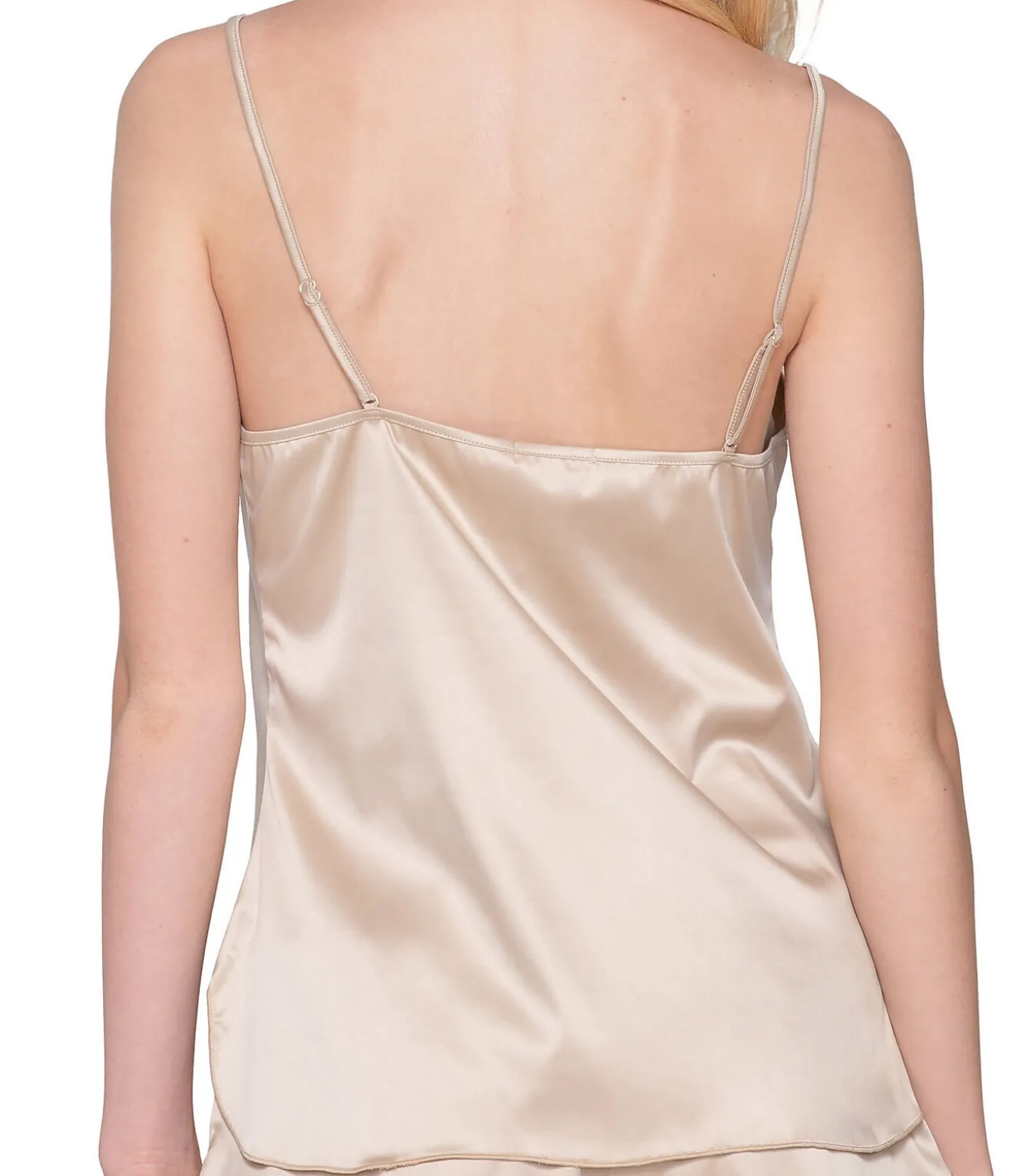 Satijnen topje met bandjes in luxe Boselli–stof. Het is zeer zacht en elastisch. Zeer mooi satijn effect.
