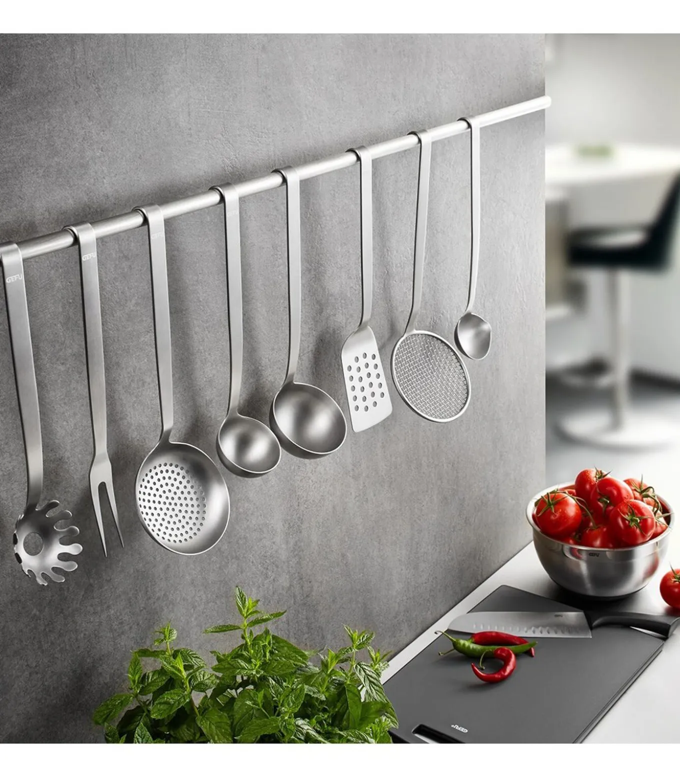• om aan de keukenreling op te hangen