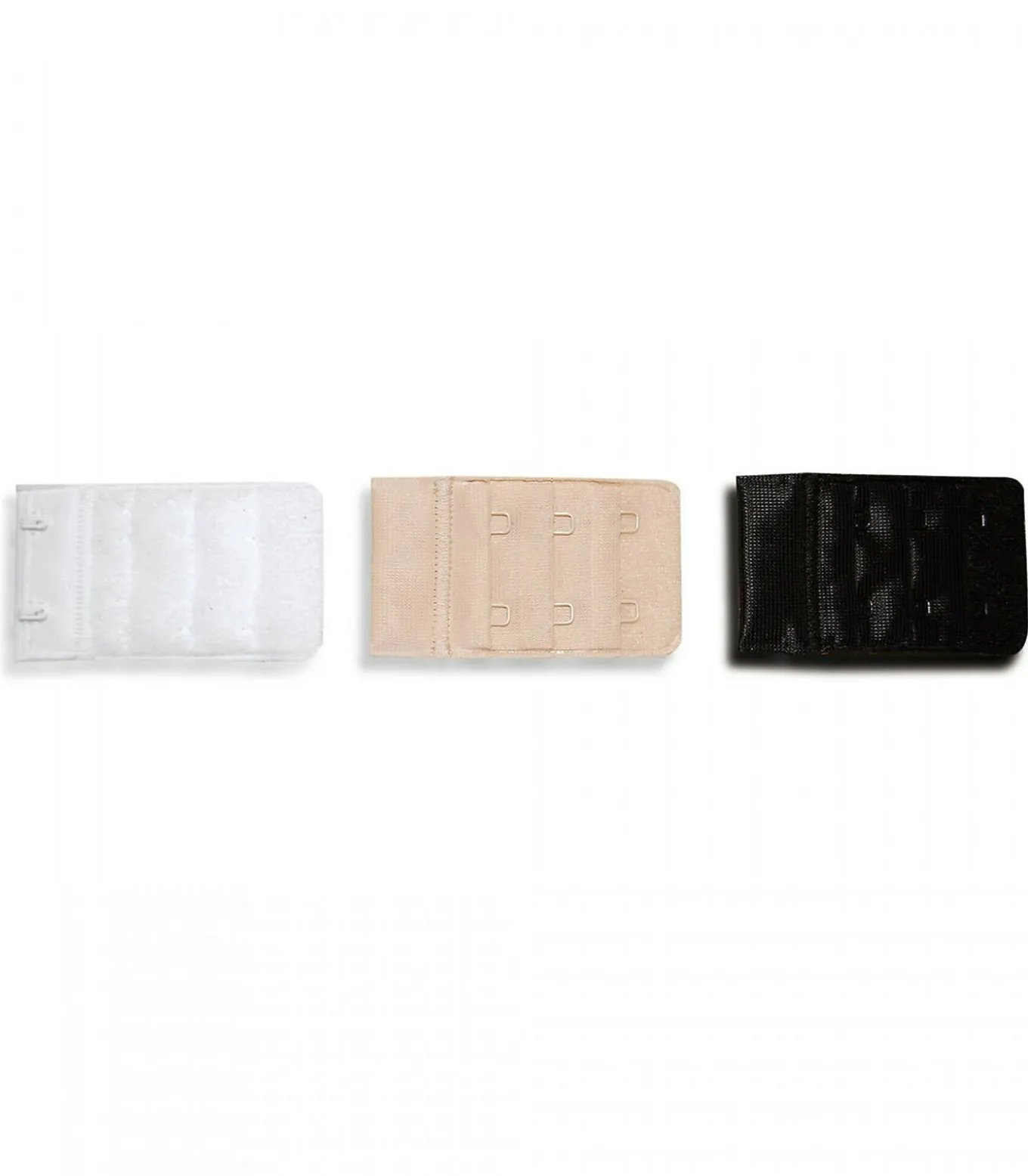 2 haakse extensies van 38mm breed om achteraan enkele centimeters te winnen en perfect comfortabel in je bh te zitten. Elke set bevat één zwarte, één witte en één huiduitbreider.