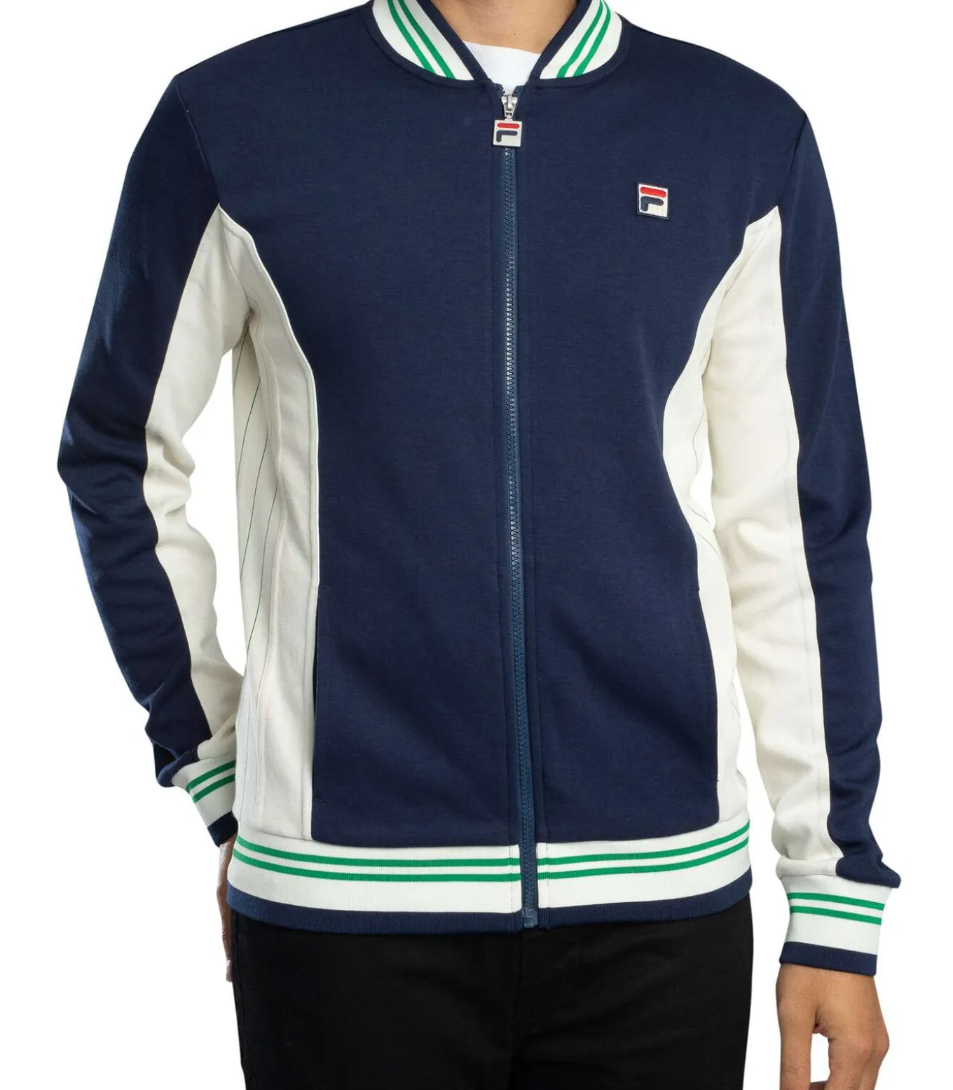 Fila presenteert het Settanta Baseball Track Jacket in marineblauw, gardenia en groen, een combinatie van een klassiek atletisch design en een praktische constructie. Het geborduurde logo op de borst, de rits met merklogo en de open zakken benadrukken het casual karakter, terwijl de geribbelde manchetten, zoom en kraag het jack structuur geven. Retrokleuren maken dit Fila jack tot een opvallend laagjesitem.