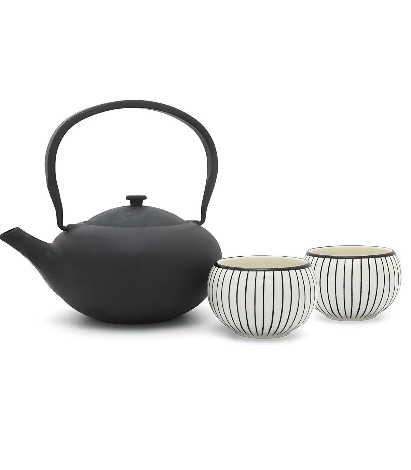 Prachtig cadeau voor liefhebbers van thee! Dit gietijzeren theepotje wordt samen met twee porseleinen kopjes geleverd in een mooie geschenkverpakking. De theepot heeft een geëmailleerde binnenzijde en heeft een inhoud van 1,0 liter. Hij wordt geleverd inclusief RVS theefilter.
