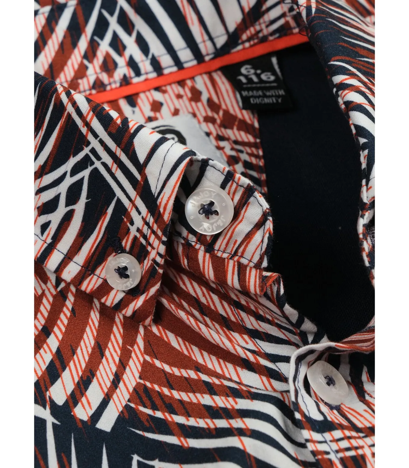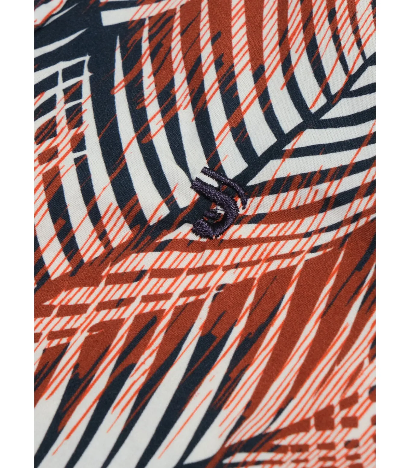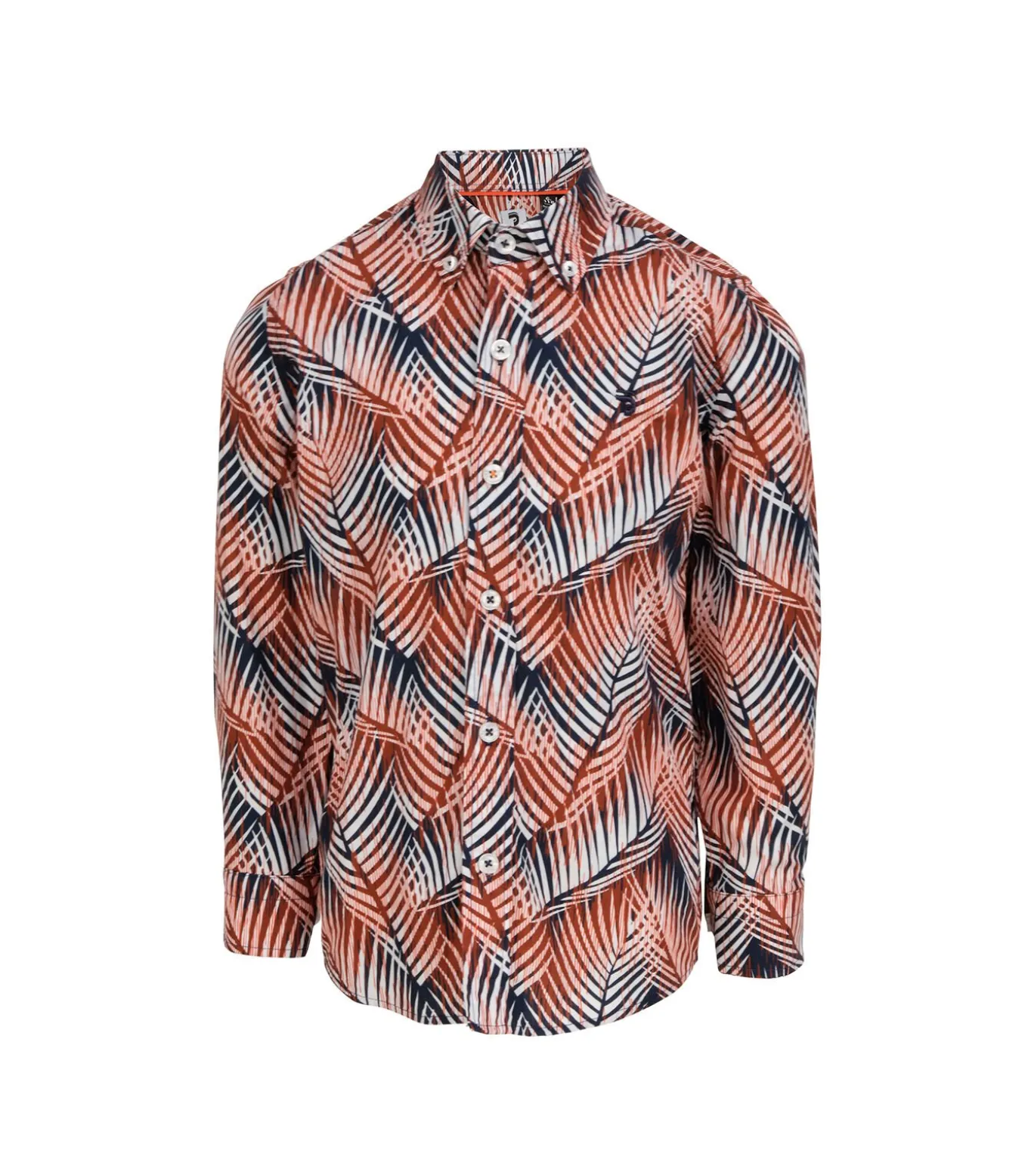 Sterke kleuren en een vleugje exotiek voor dit shirt met lange mouwen, met palmprints. Het materiaal is 100% katoen. De snit is recht. De kraag is klassiek met tips met knoop. Het J & Joy –logo is geborduurd op de borst. Een chique kamer die je shorts en bermudas zal verbeteren.
