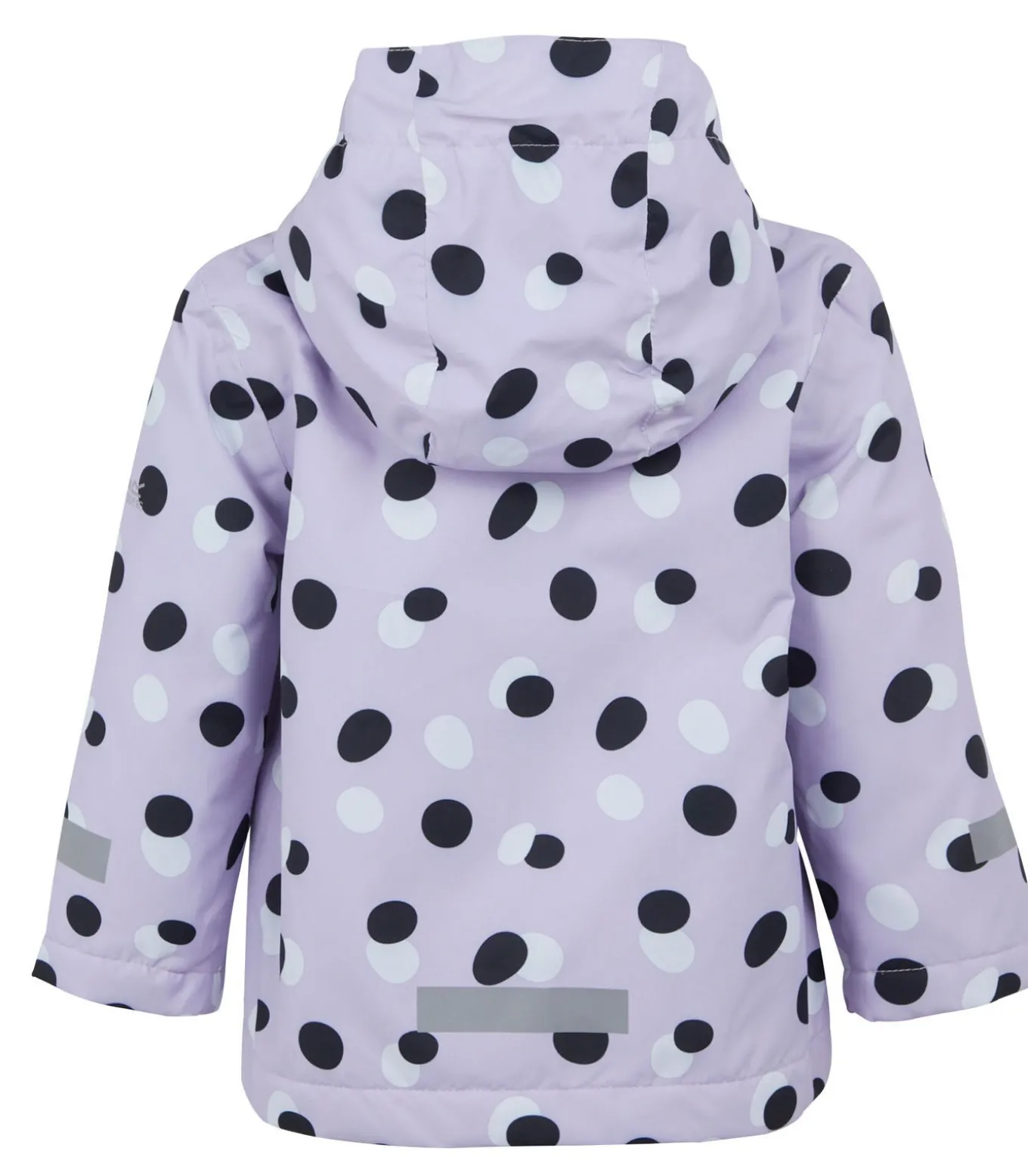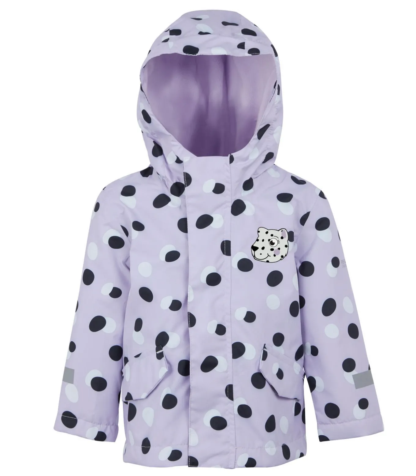 Regatta SHYLA THE LEOPARD Lila Jasje is een kledingvoorwerp van 100% Polyester met een ontwerp dat gepersonificeerd is als een leeuwerik, met vlekken. Deze jas heeft een duurzaam en warme opstelling, inclusief adembaar, DWR–eindlaag, Isolerend, Isotex 10000, lichtgewicht, sneldroog, Thermo Guard, waterafstotend en waterdicht. Het ontwerp heeft reflectie over de hele rondte en gespleten naden. De halslijn is een kapiteinshalslijn, met lange mouwen en een kap dat gegroeid is op de kap, Peak. De jas bevat twee zakken met klepsluiting, haak en lus. De sluiting is volledig en wordt versterkt door drukknopsluiting en een stormflap. Het materiaal heeft een wateropneming van 10000g/m²/24hrs. Het product is gemaakt van hergebruikt materiaal en is voorzien van een gegarandeerde levensduur van 5–6 jaar, met een lengte van 24 in.