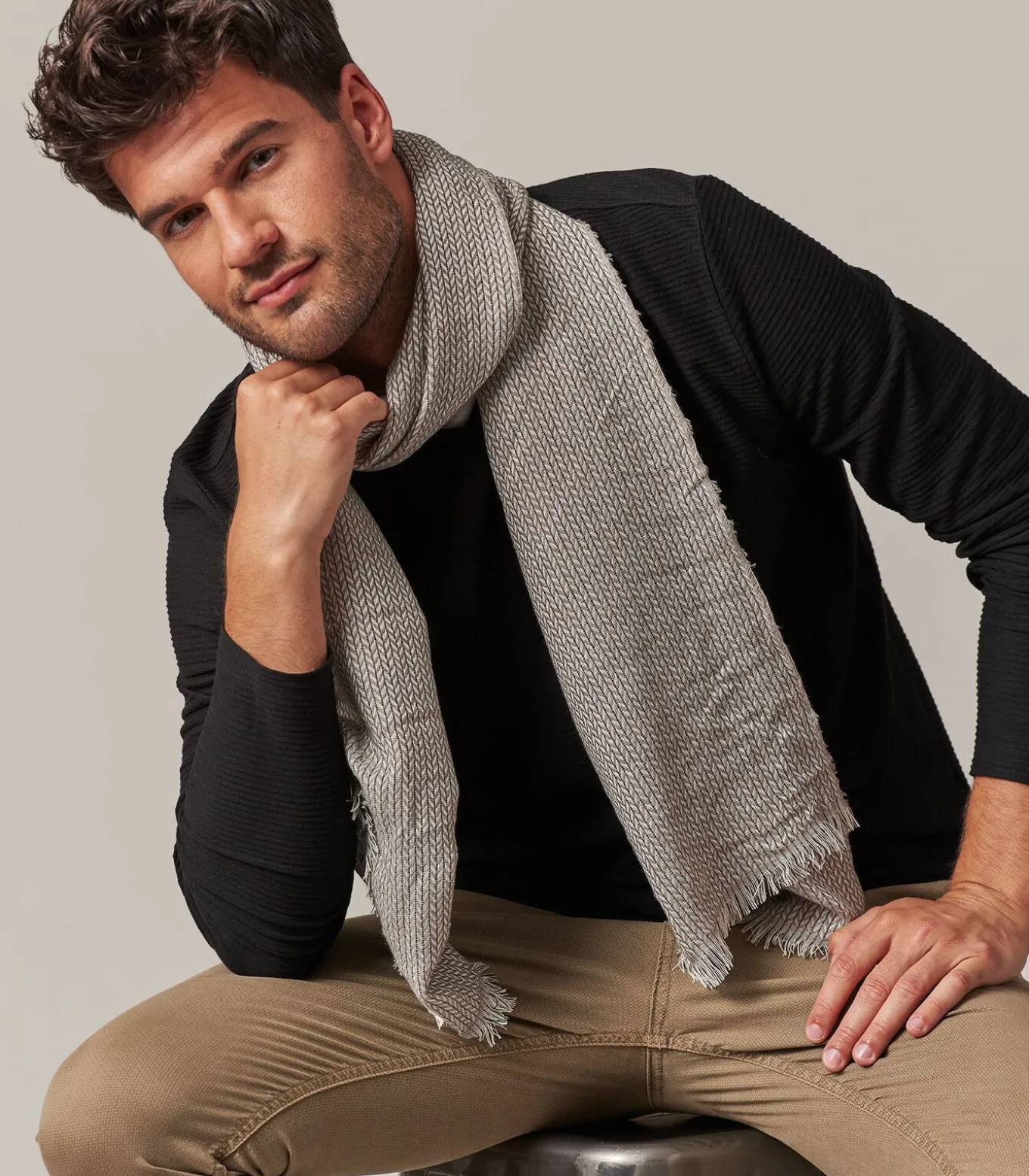 Ontdek discrete elegantie met de SID sjaal, een must–have accessoire voor mannen die op zoek zijn naar verfijnde eenvoud. Deze sjaal is gemaakt van 90% modalen 10% wol en biedt de hele dag een aangenaam zacht gevoel. De fijne en lichte textuur maakt het een veelzijdige keuze, perfect voor alle seizoenen.De kleine franjes aan de uiteinden voegen een vleugje verfijning toe zonder afbreuk te doen aan de strakke stijl. Of het nu voor een dagje kantoor is of voor een casual uitje, de SID–sjaal geeft je outfit meteen een boost.