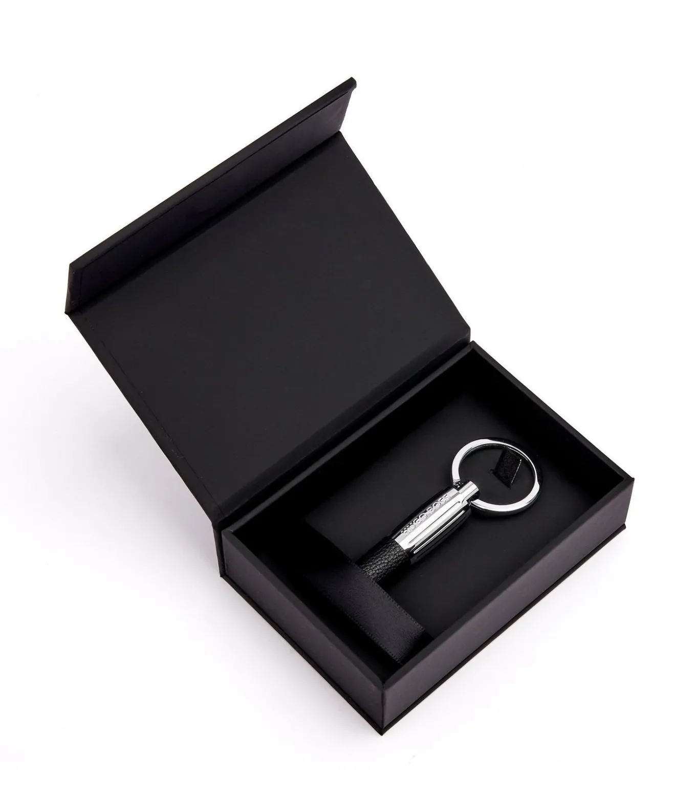 The ‘Pure Iconic’ keyring is a re–edition of our best–selling Pure keyring, combining crisp chrome metal with grained black textures (PU). Playful oversized stripes and an unexpected logo placement add the final touch to this beautiful accessory. Dimensions: DIA.14.4 x 90/RING:32 mm, Material: 90% Chrome plating,10% Polyurethane